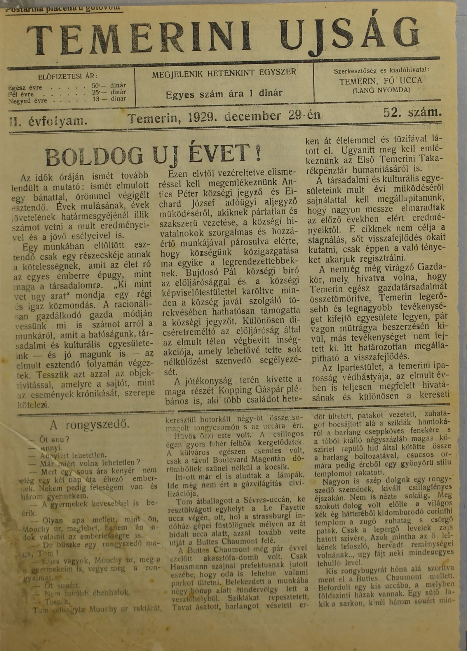 Temerini Újság 1928-1944, 2. évf. 1929. december 29. 52. sz.