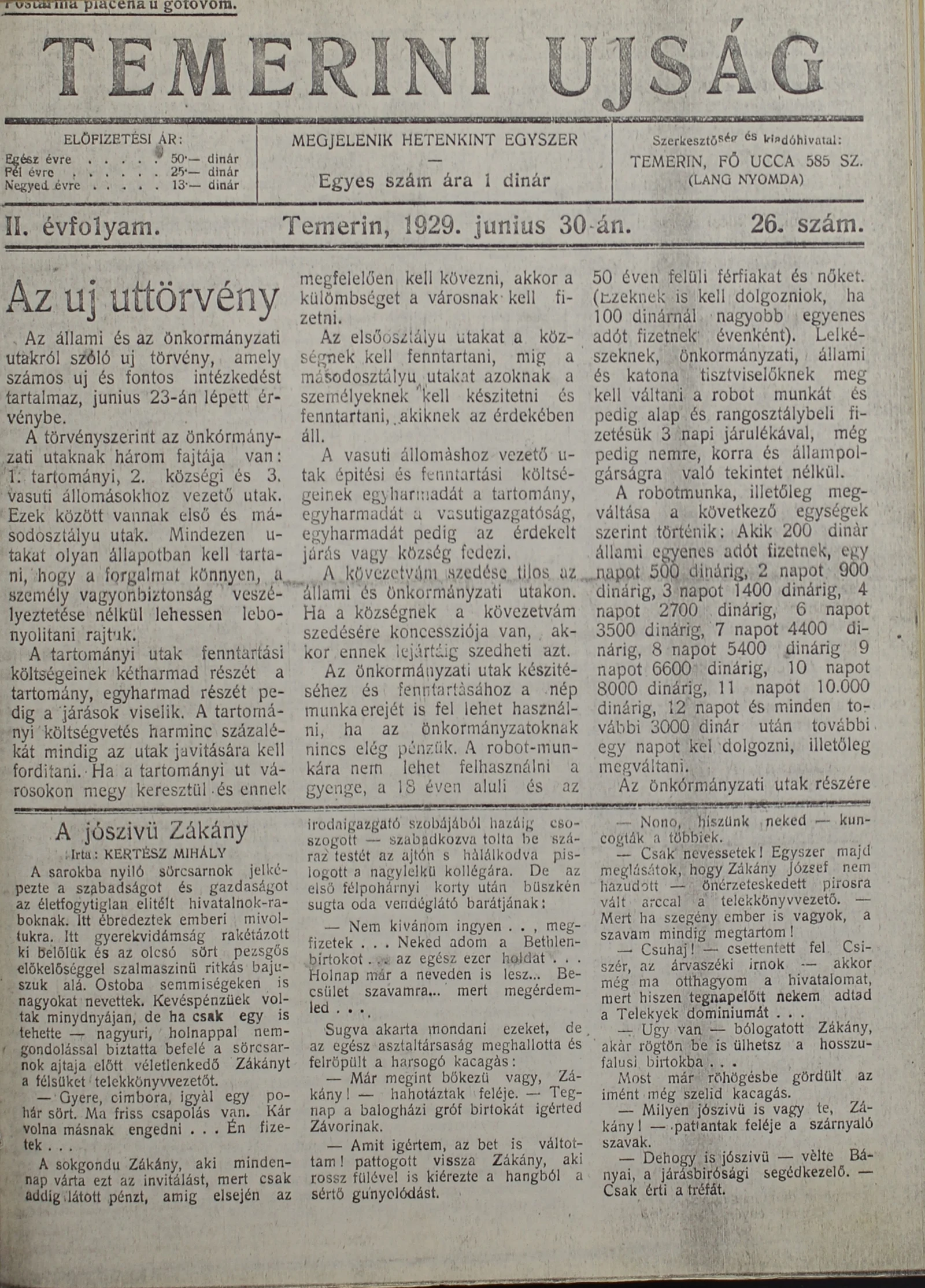 Temerini Újság 1928-1944, 2. évf. 1929. június 30. 26. sz.