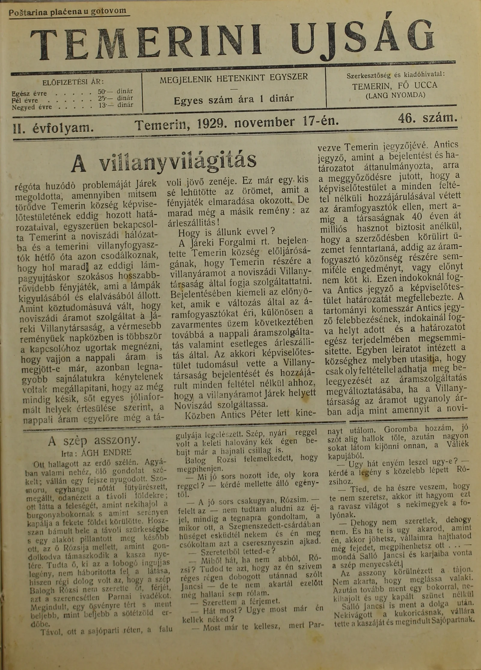 Temerini Újság 1928-1944, 2. évf. 1929. november 17. 46. sz.