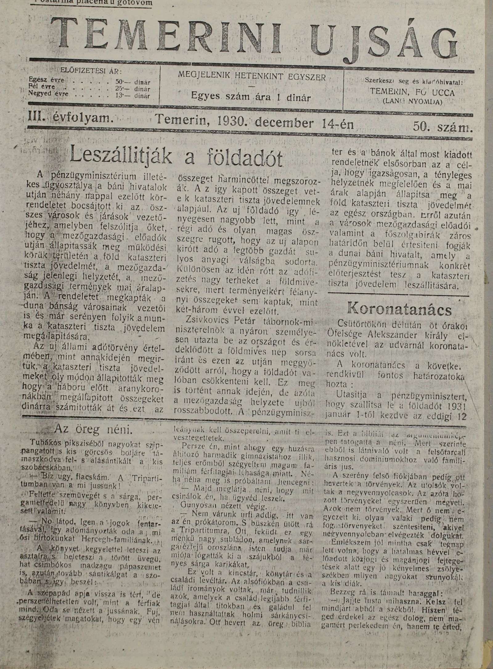 Temerini Újság 1928-1944, 3. évf. 1930. december 14. 50. sz.