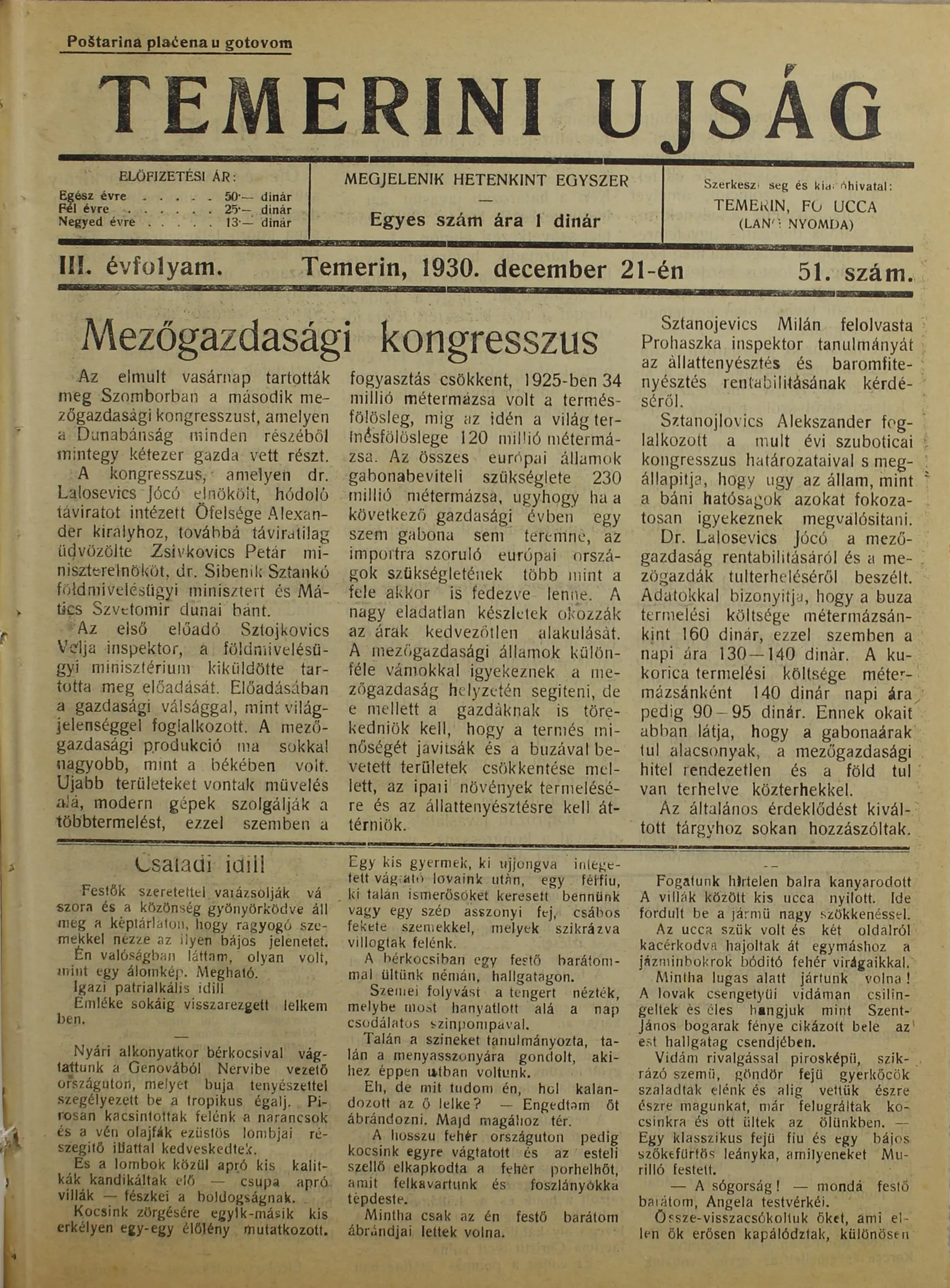 Temerini Újság 1928-1944, 3. évf. 1930. december 21. 51. sz.