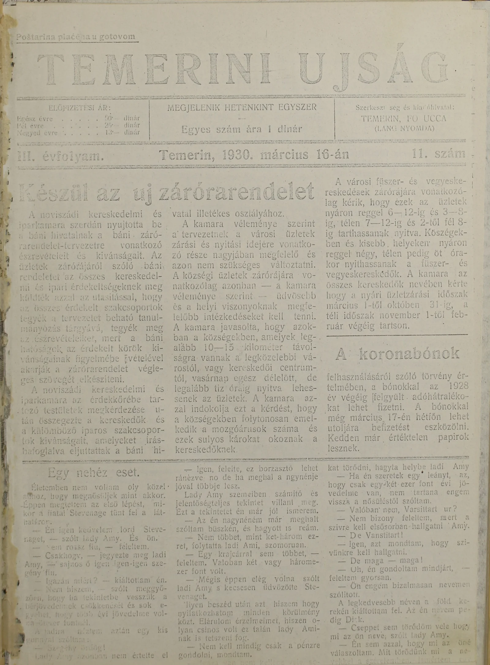 Temerini Újság 1928-1944, 3. évf. 1930. március 16. 11. sz.
