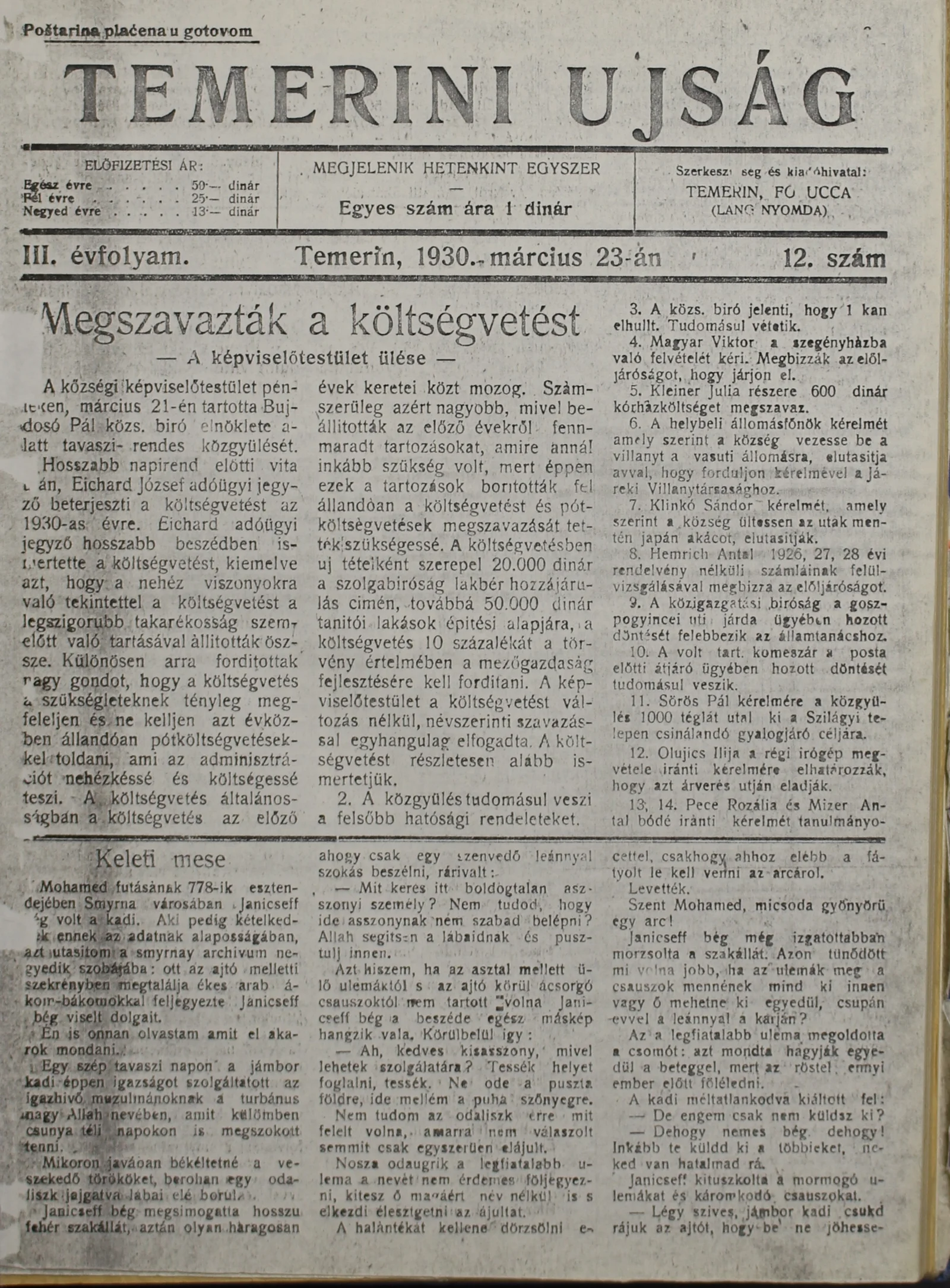 Temerini Újság 1928-1944, 3. évf. 1930. március 23. 12. sz.