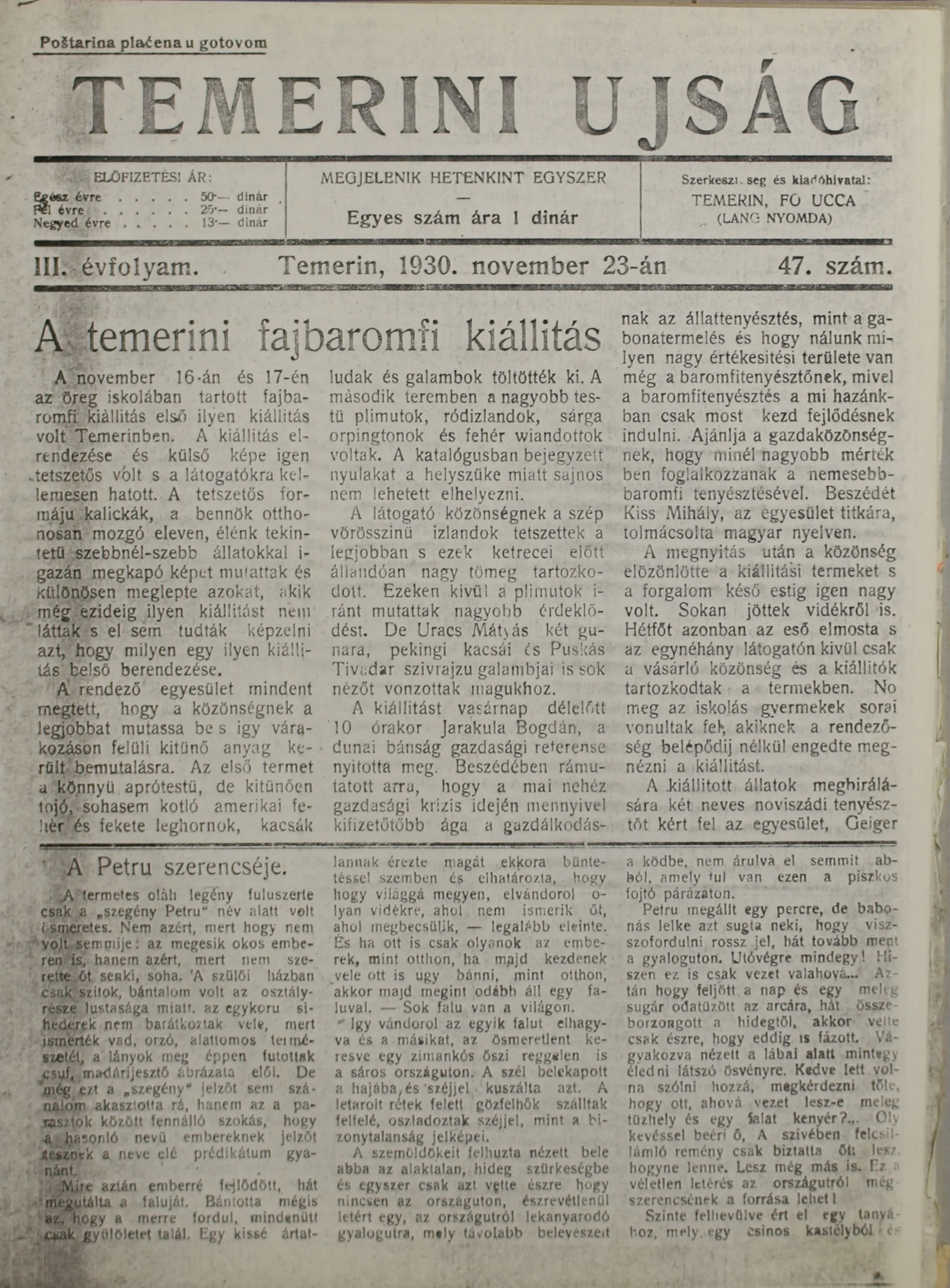 Temerini Újság 1928-1944, 3. évf. 1930. november 23. 47. sz.