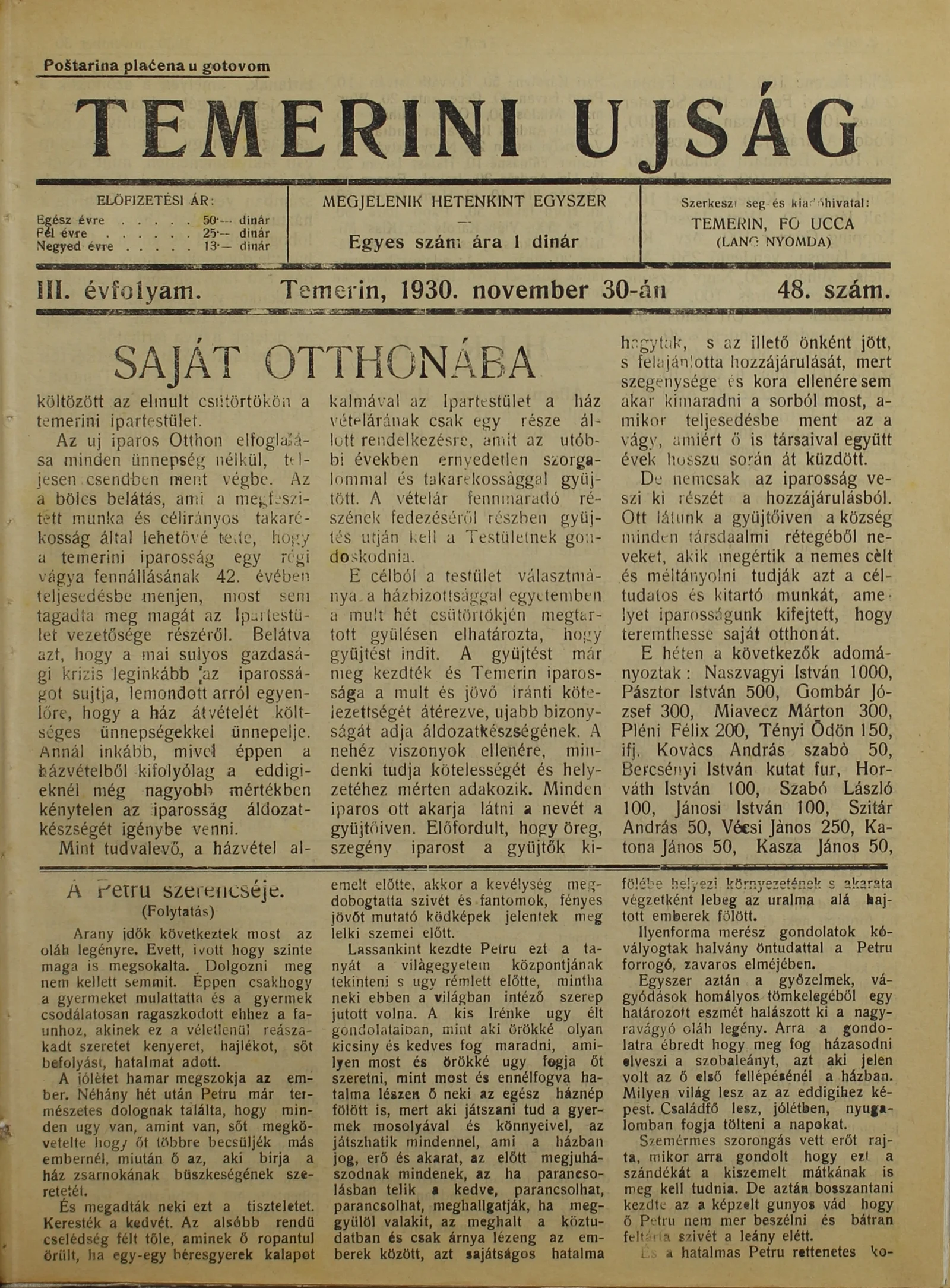 Temerini Újság 1928-1944, 3. évf. 1930. november 30. 48. sz.