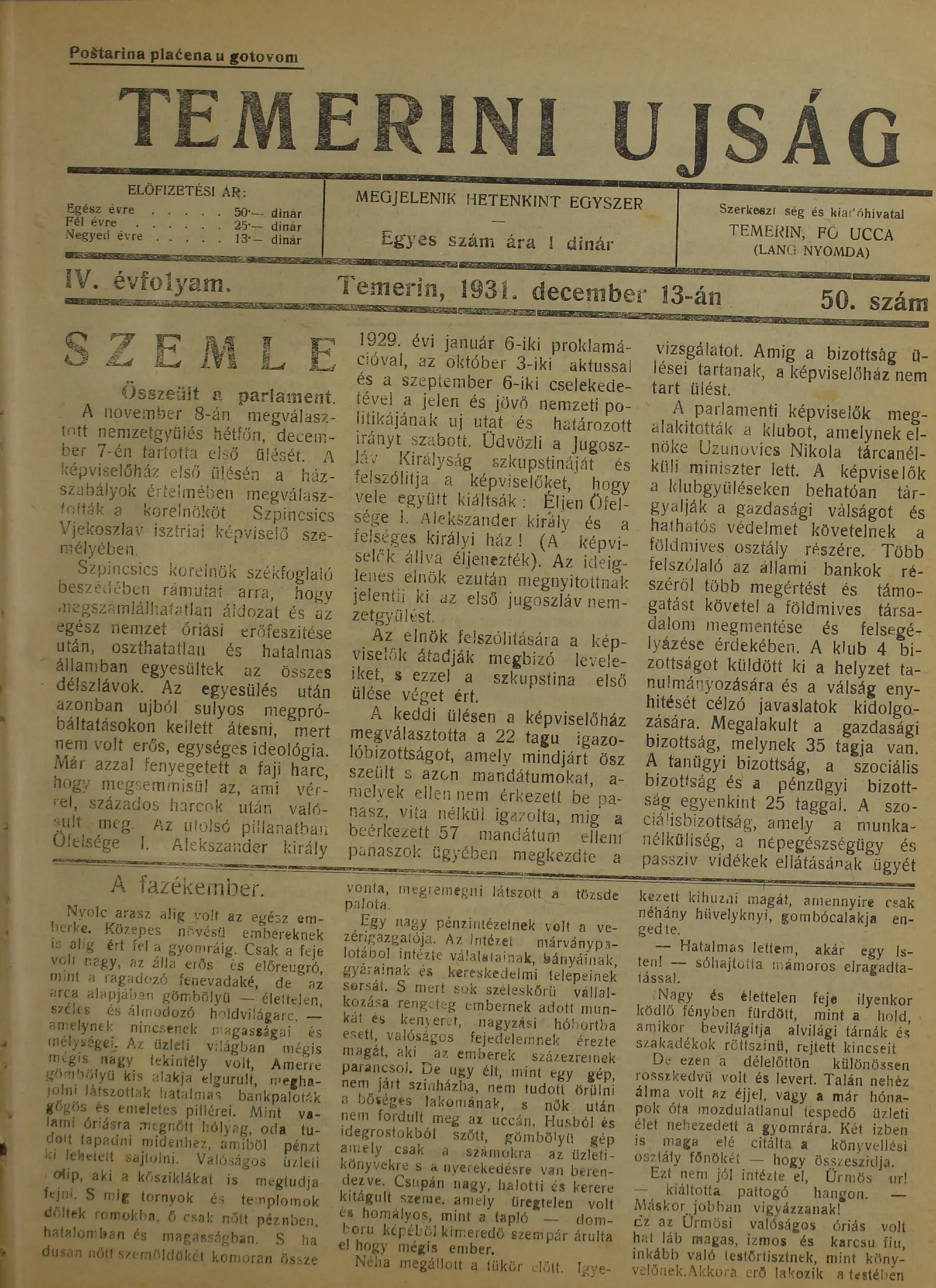 Temerini Újság 1928-1944, 4. évf. 1931. december 13. 50. sz.