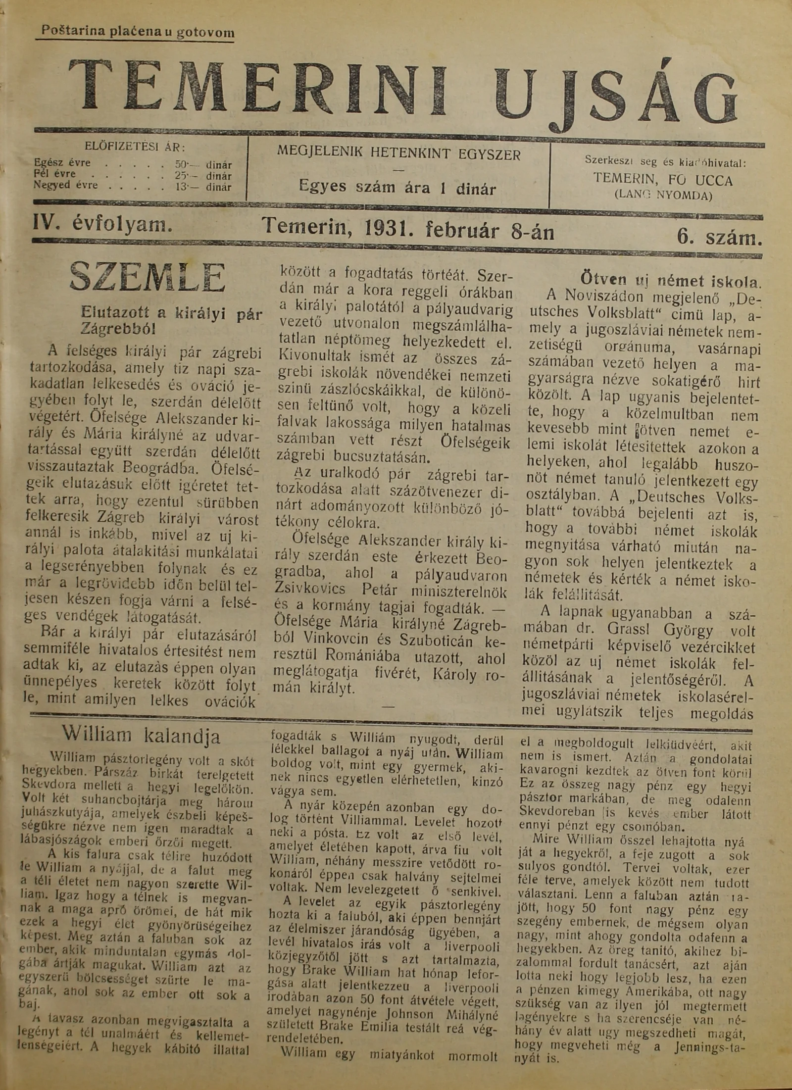 Temerini Újság 1928-1944, 4. évf. 1931. február 8. 6. sz.