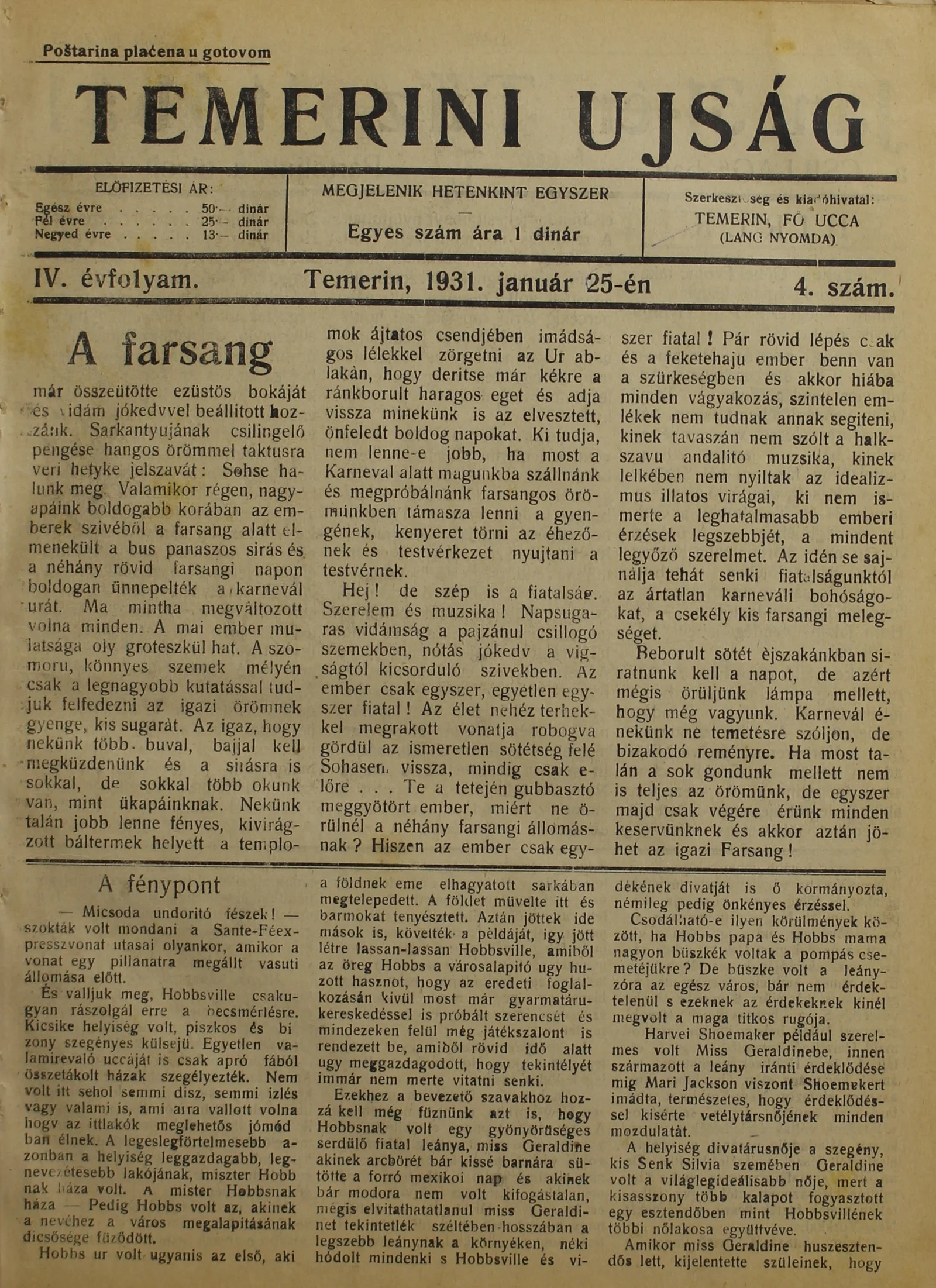 Temerini Újság 1928-1944, 4. évf. 1931. január 25. 4. sz.