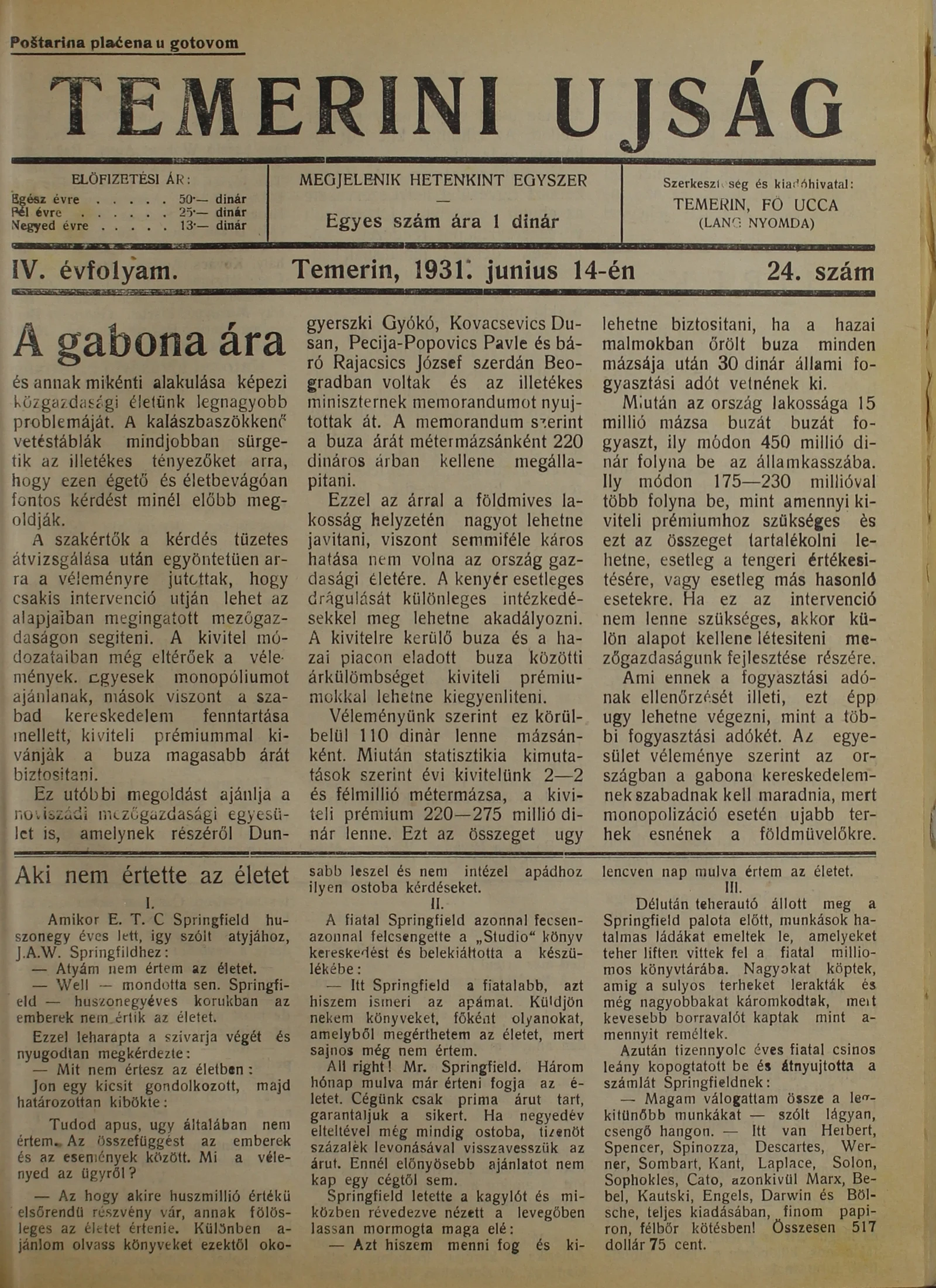 Temerini Újság 1928-1944, 4. évf. 1931. június 14. 24. sz.