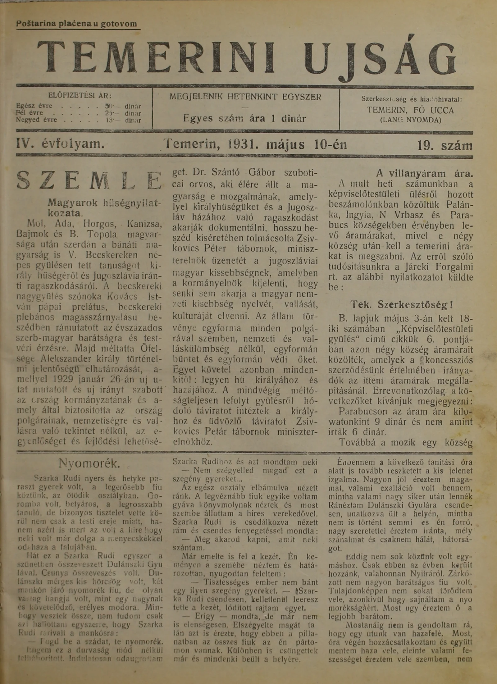 Temerini Újság 1928-1944, 4. évf. 1931. május 10. 19. sz.