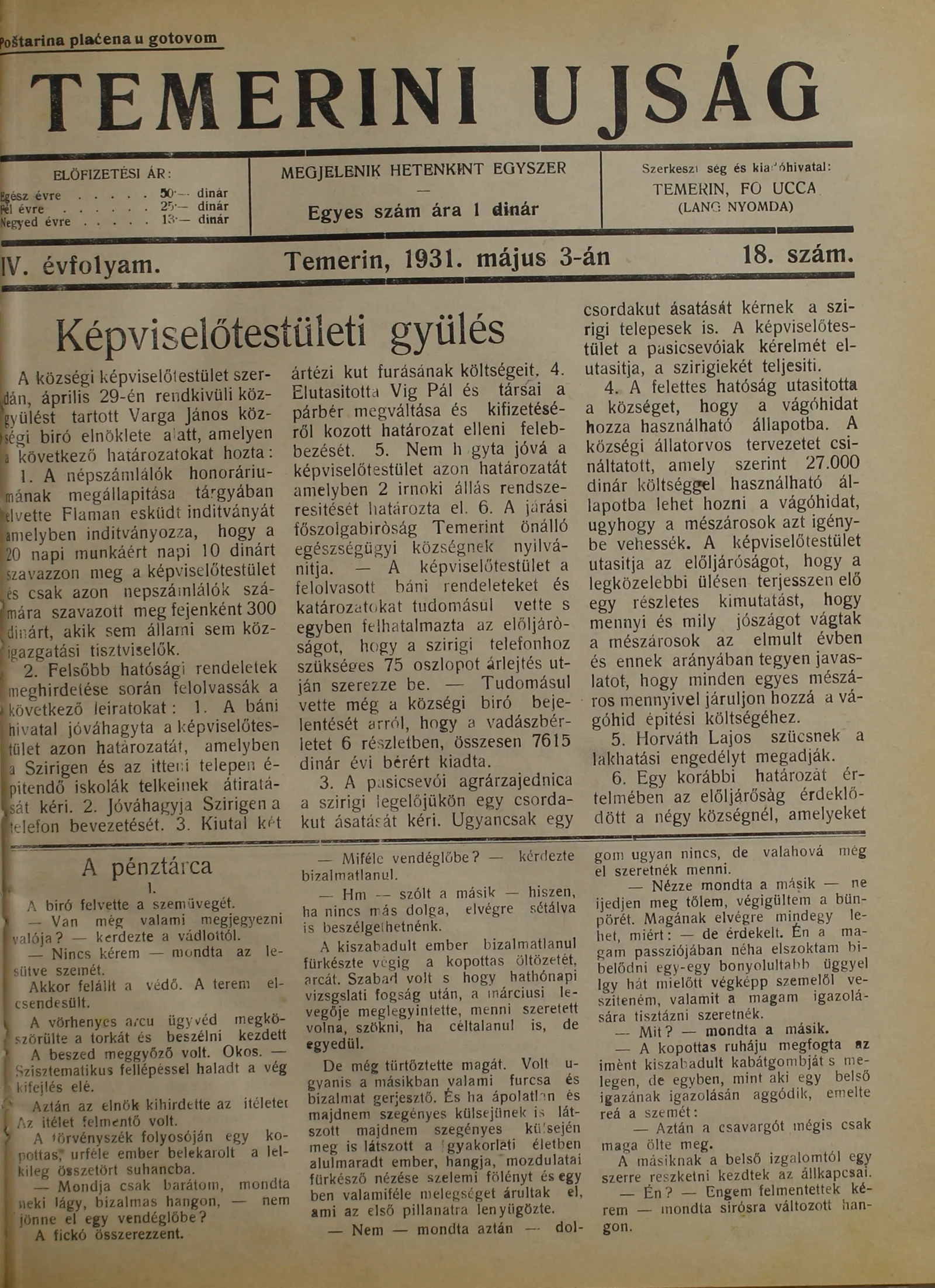 Temerini Újság 1928-1944, 4. évf. 1931. május 3. 18. sz.
