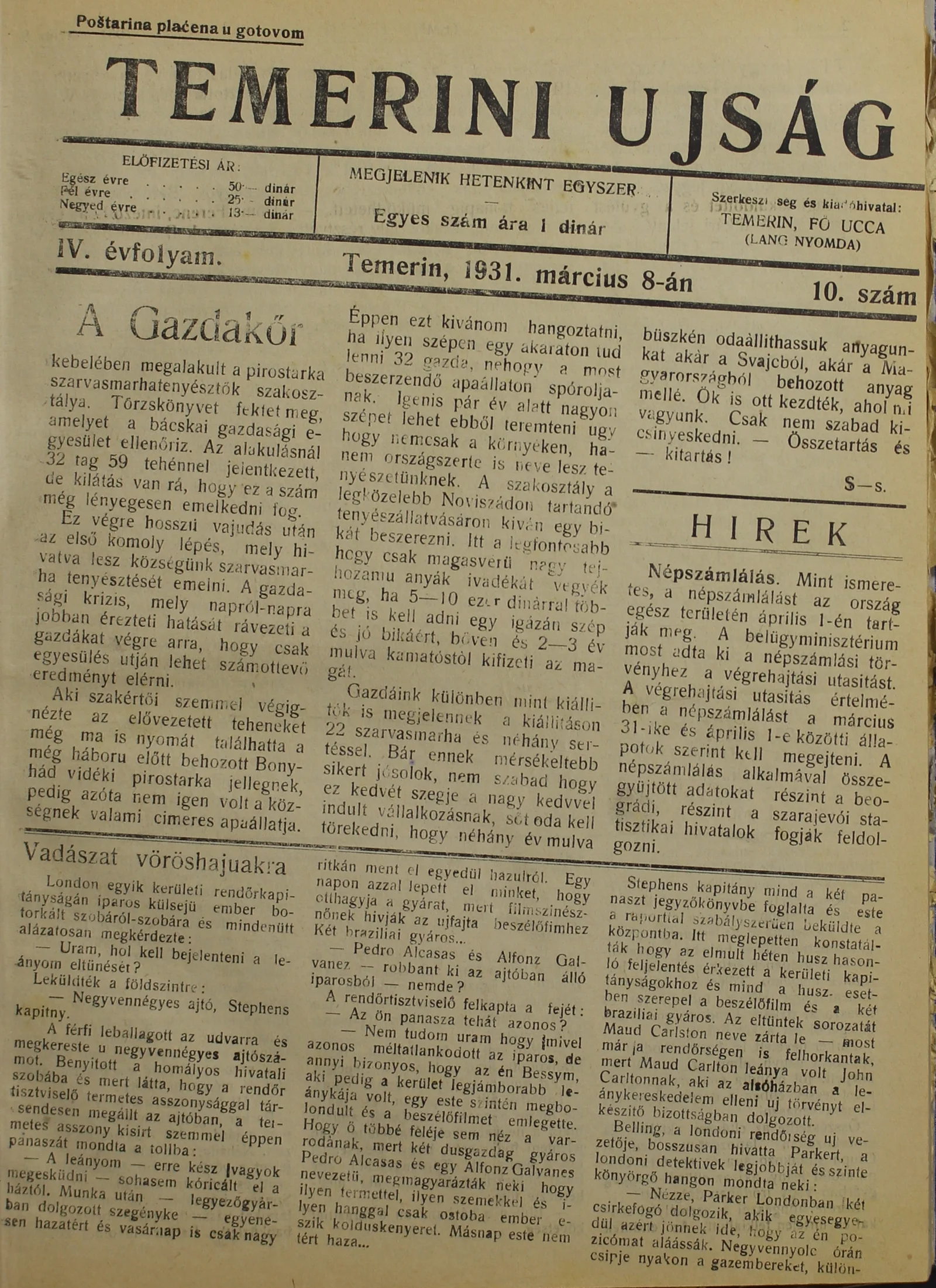 Temerini Újság 1928-1944, 4. évf. 1931. március 8. 10. sz.