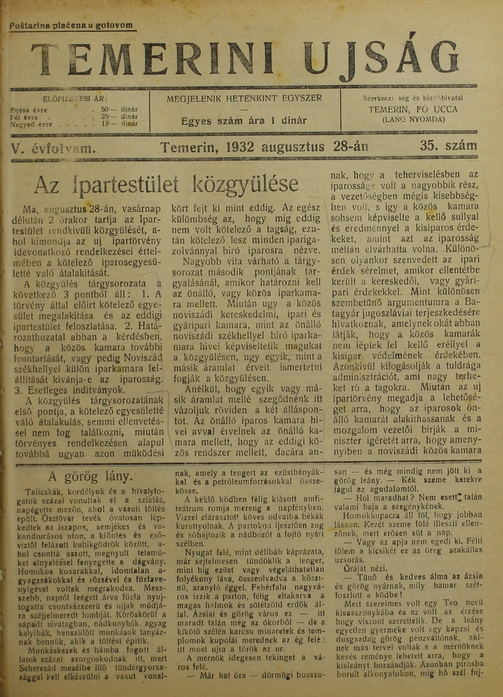 Temerini Újság 1928-1944, 5. évf. 1932. augusztus 28. 35. sz.