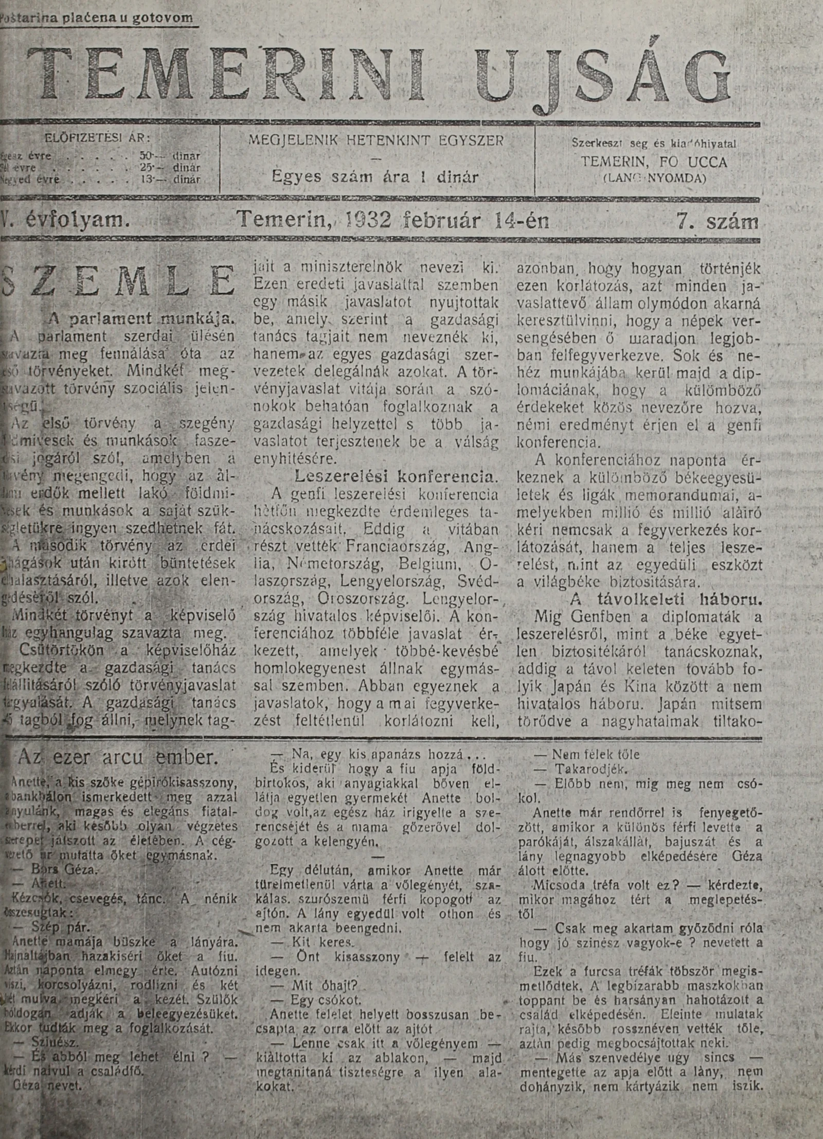 Temerini Újság 1928-1944, 5. évf. 1932. február 14. 7. sz.