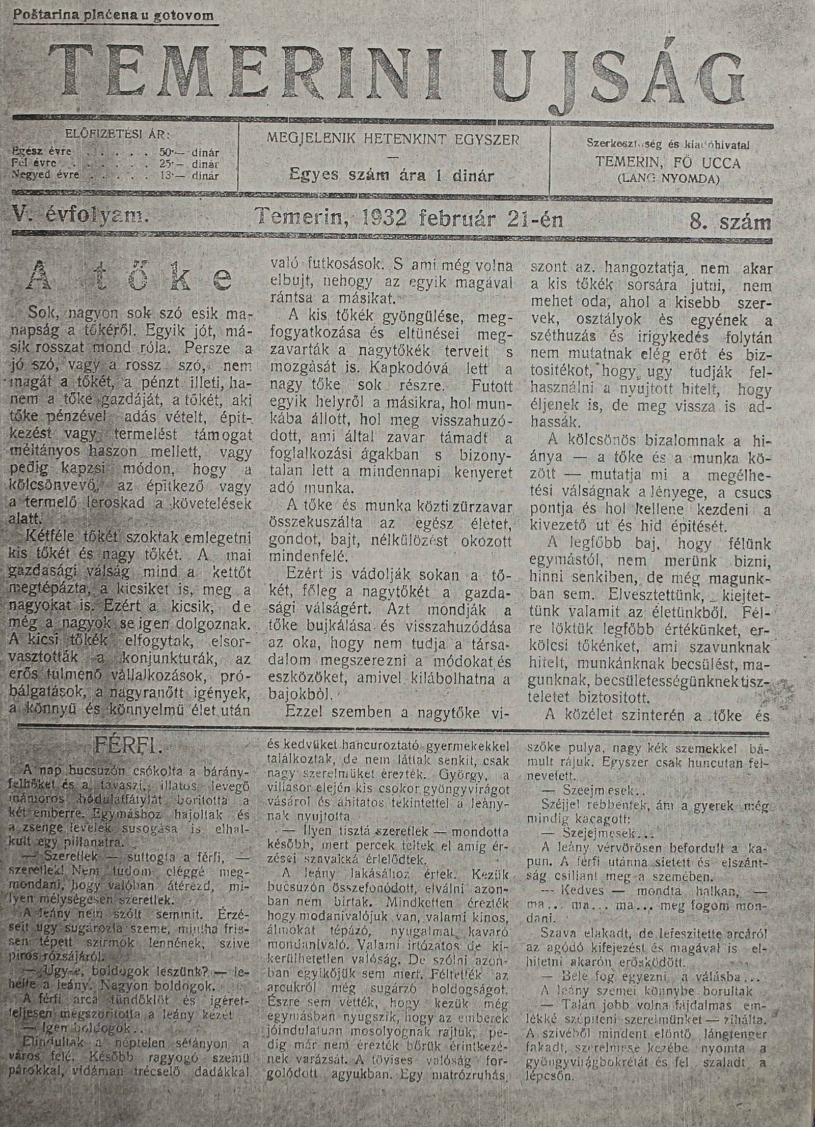 Temerini Újság 1928-1944, 5. évf. 1932. február 21. 8. sz.
