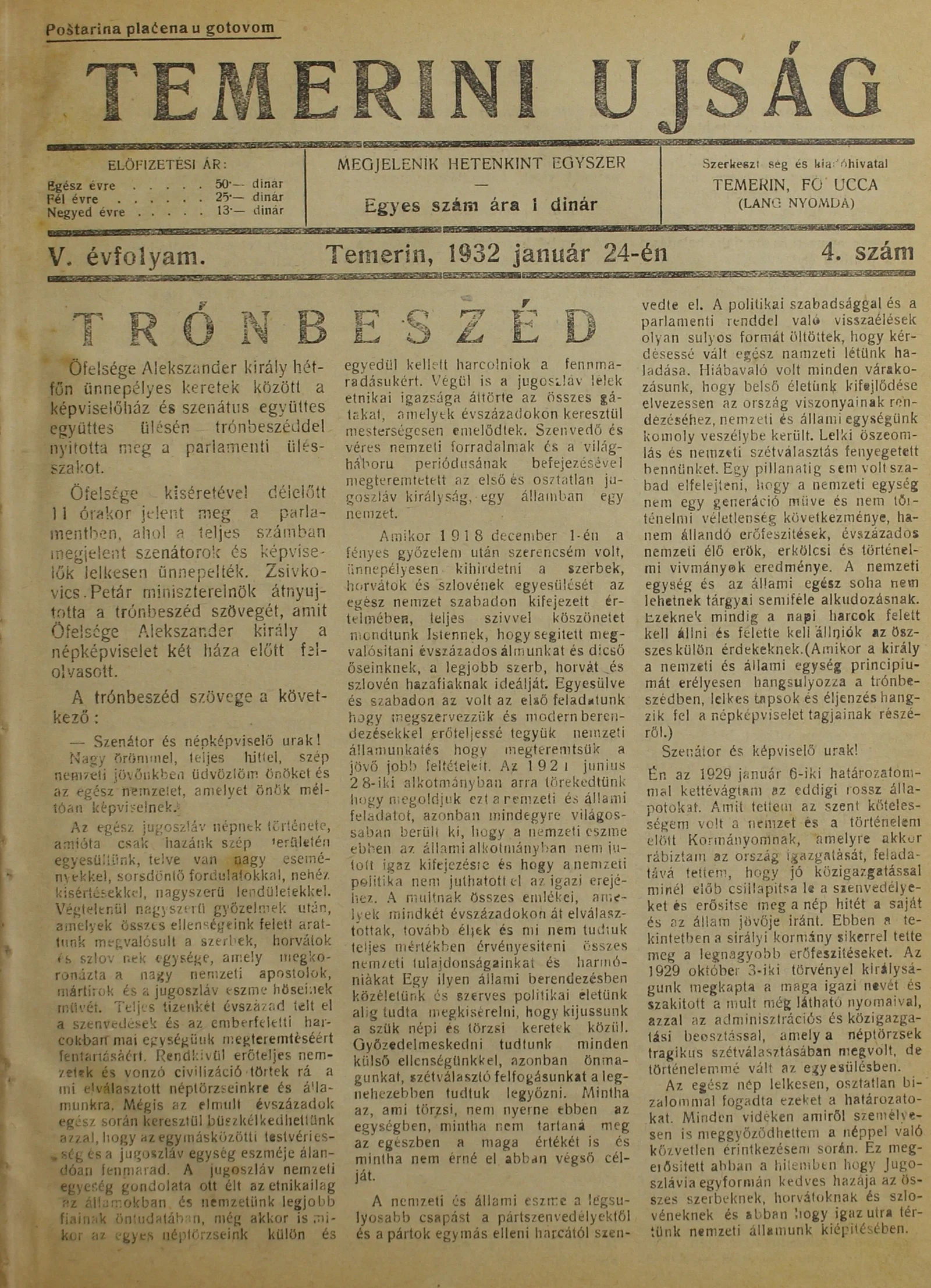 Temerini Újság 1928-1944, 5. évf. 1932. január 24. 4. sz.