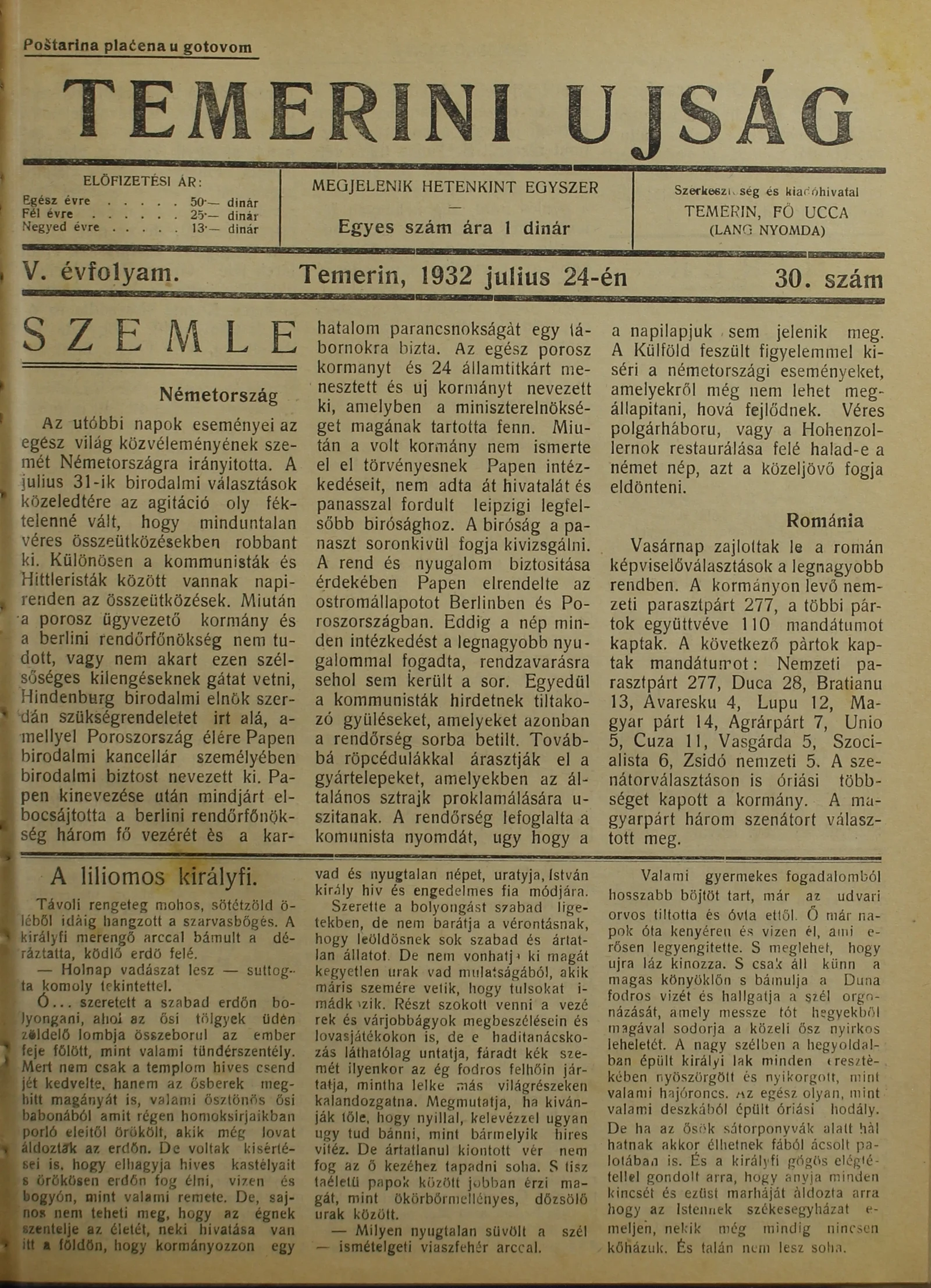 Temerini Újság 1928-1944, 5. évf. 1932. július 24. 30. sz.