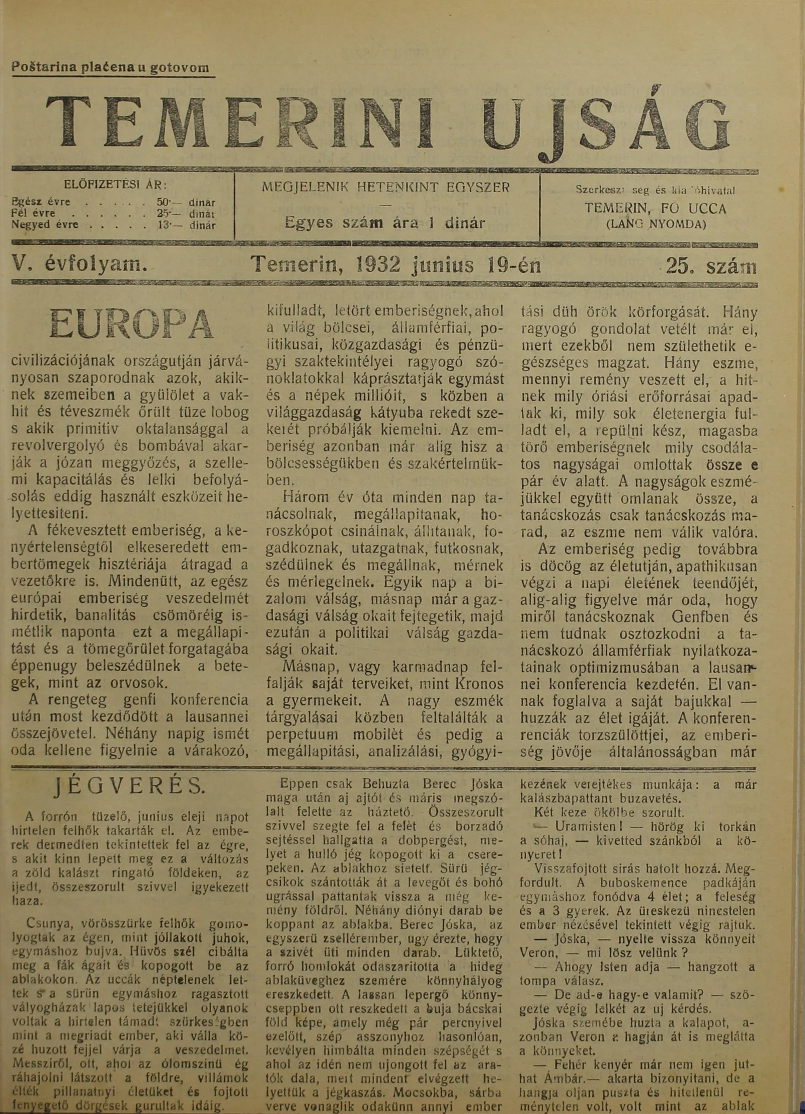 Temerini Újság 1928-1944, 5. évf. 1932. június 19. 25. sz.