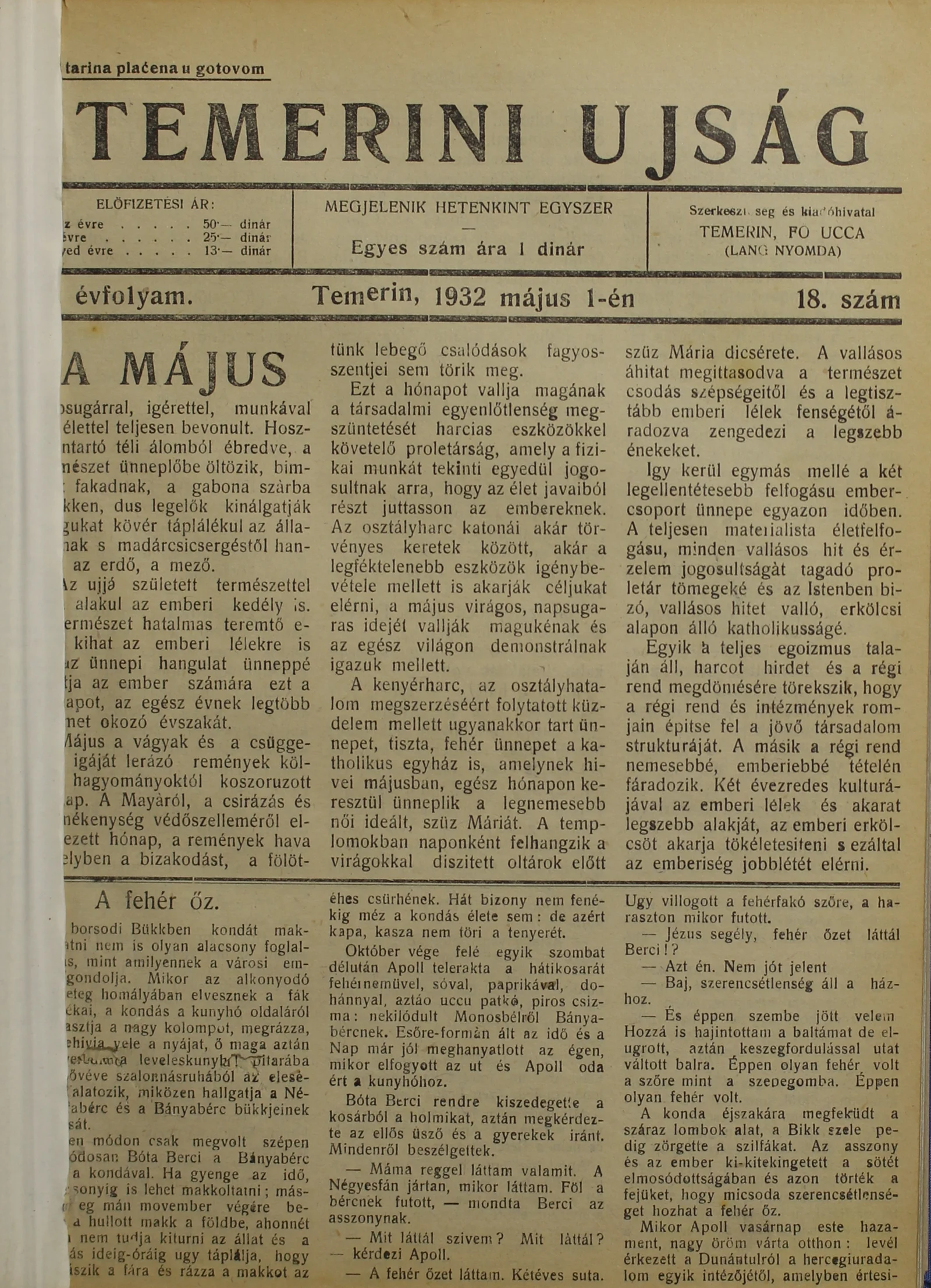 Temerini Újság 1928-1944, 5. évf. 1932. május 1. 18. sz.