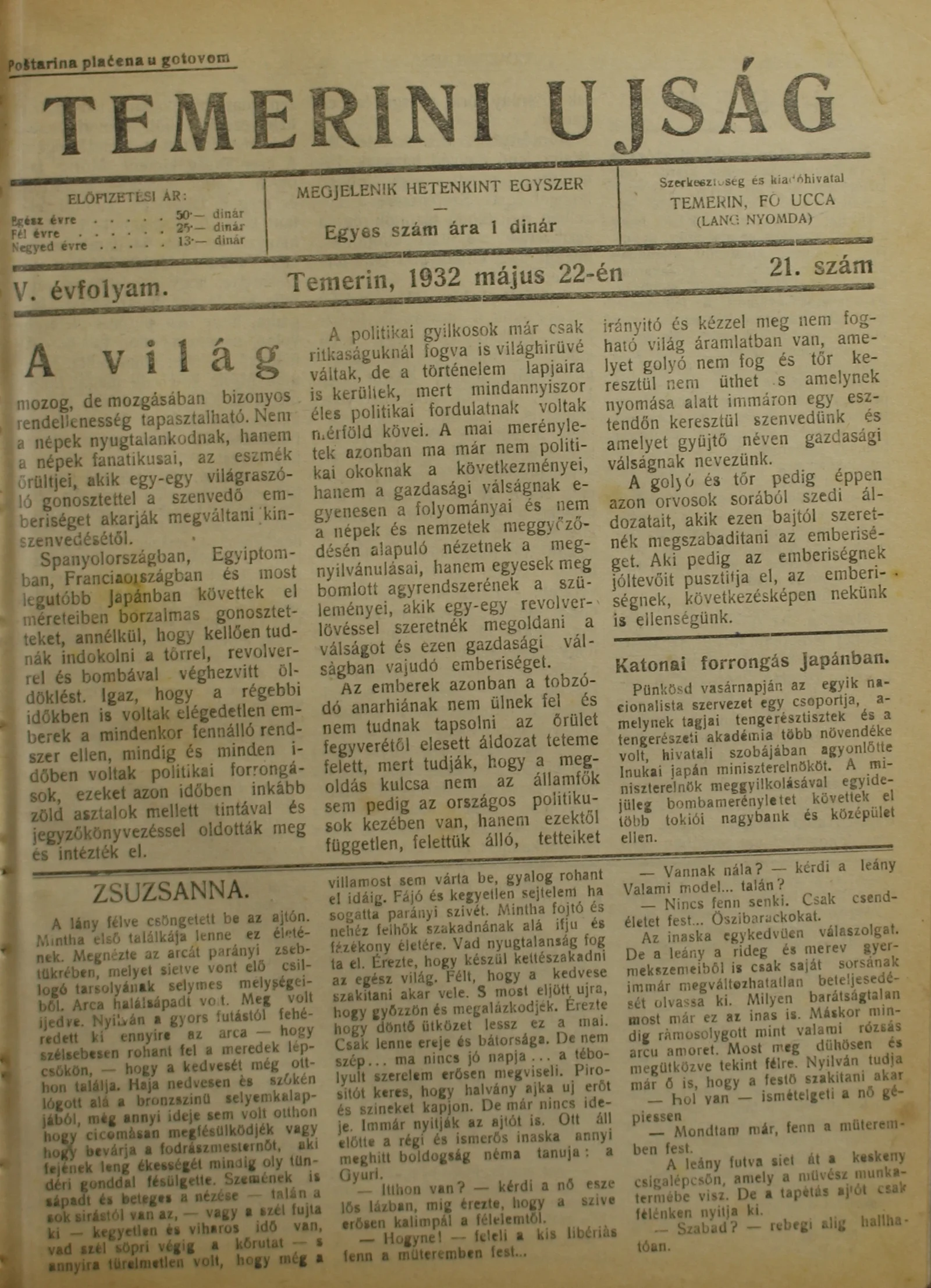 Temerini Újság 1928-1944, 5. évf. 1932. május 22. 21. sz.