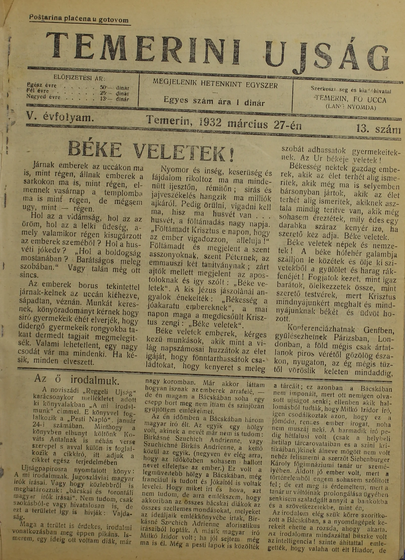 Temerini Újság 1928-1944, 5. évf. 1932. március 27. 13. sz.