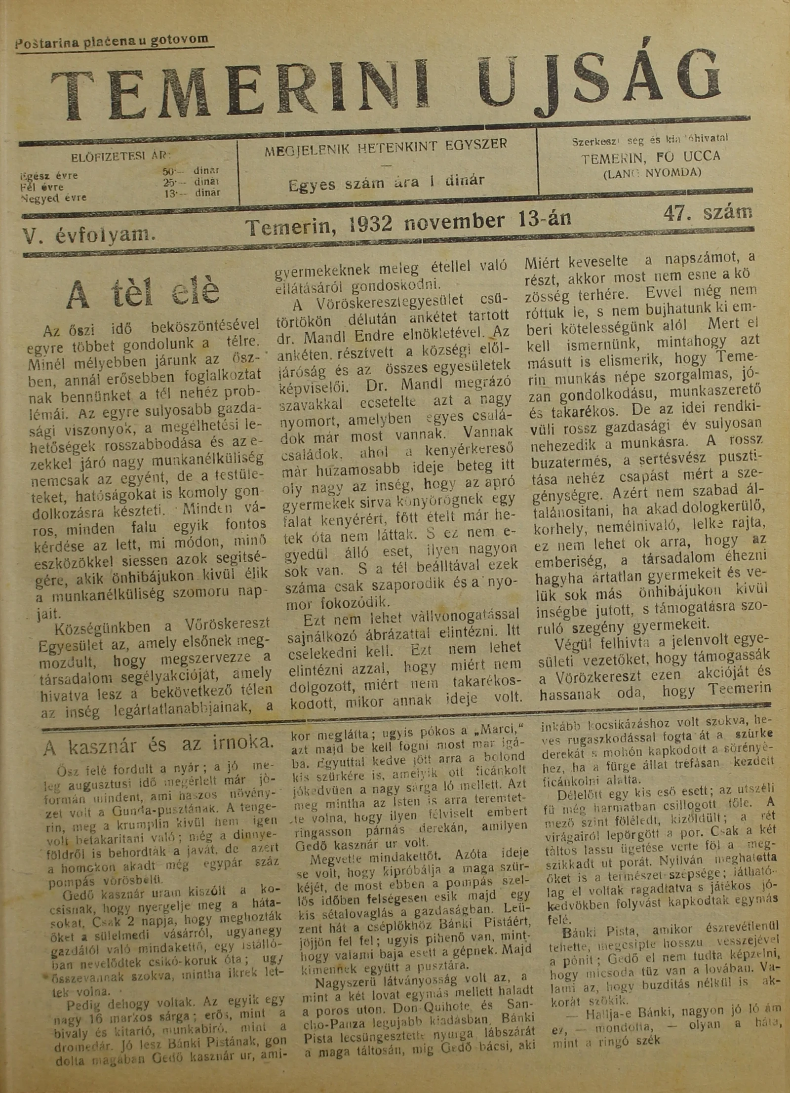 Temerini Újság 1928-1944, 5. évf. 1932. november 13. 47. sz.