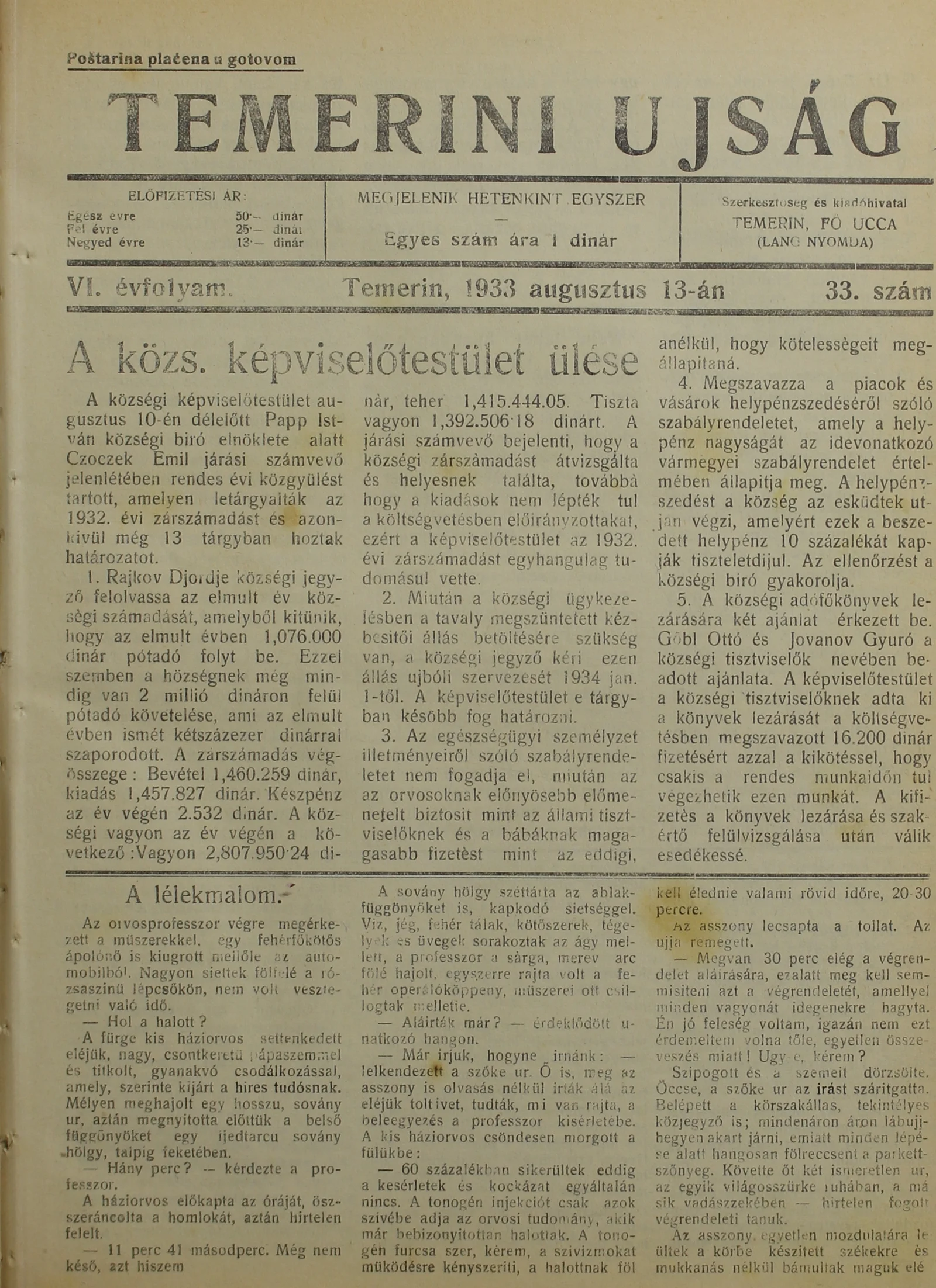 Temerini Újság 1928-1944, 6. évf. 1933. augusztus 13. 33. sz.