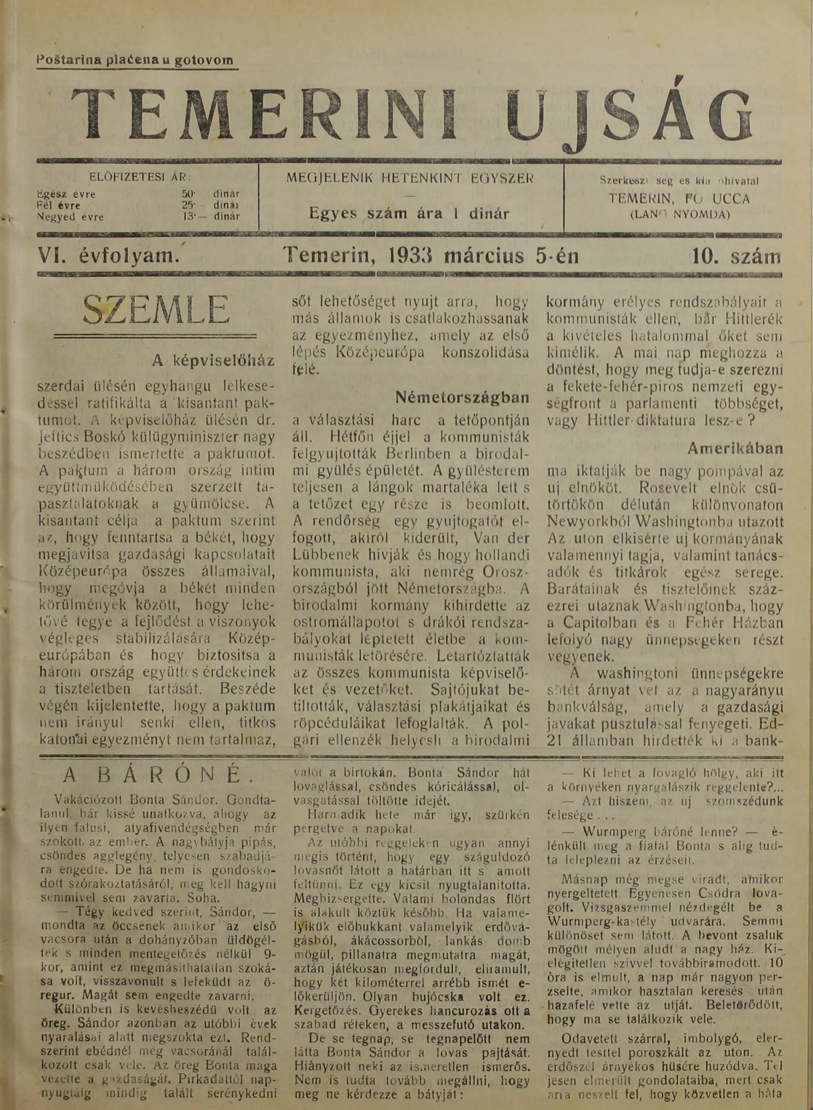Temerini Újság 1928-1944, 6. évf. 1933. március 5. 10. sz.