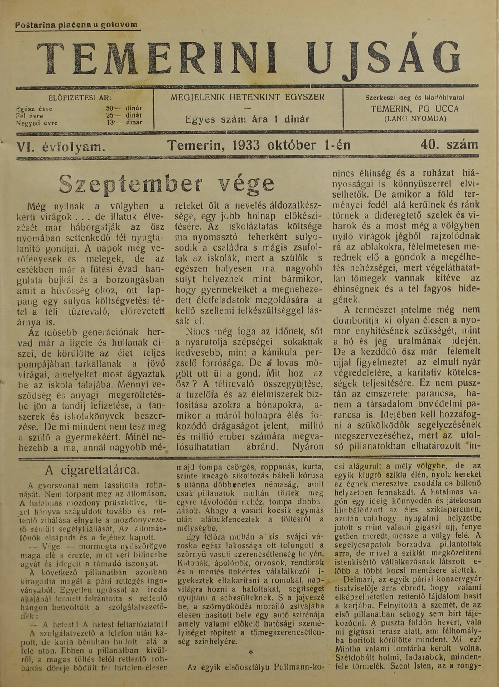 Temerini Újság 1928-1944, 6. évf. 1933. október 1. 40. sz.
