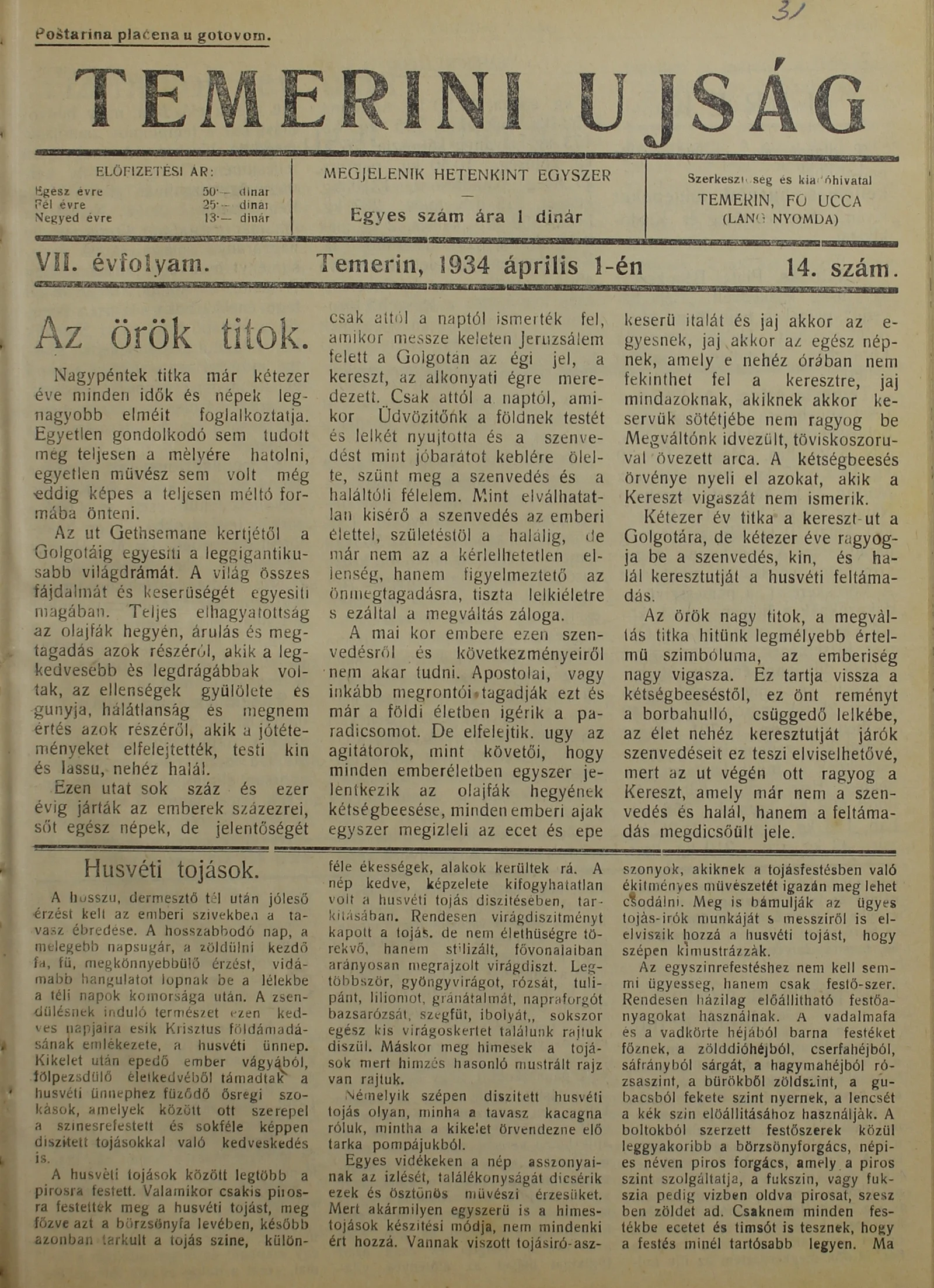Temerini Újság 1928-1944, 7. évf. 1934. április 1. 14. sz.