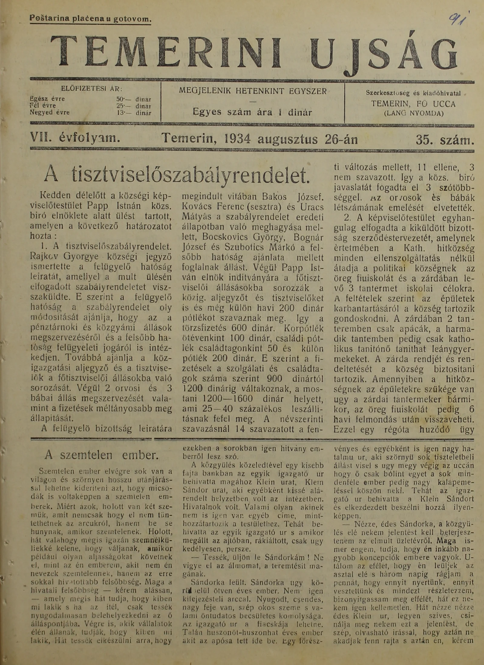 Temerini Újság 1928-1944, 7. évf. 1934. augusztus 26. 35. sz.