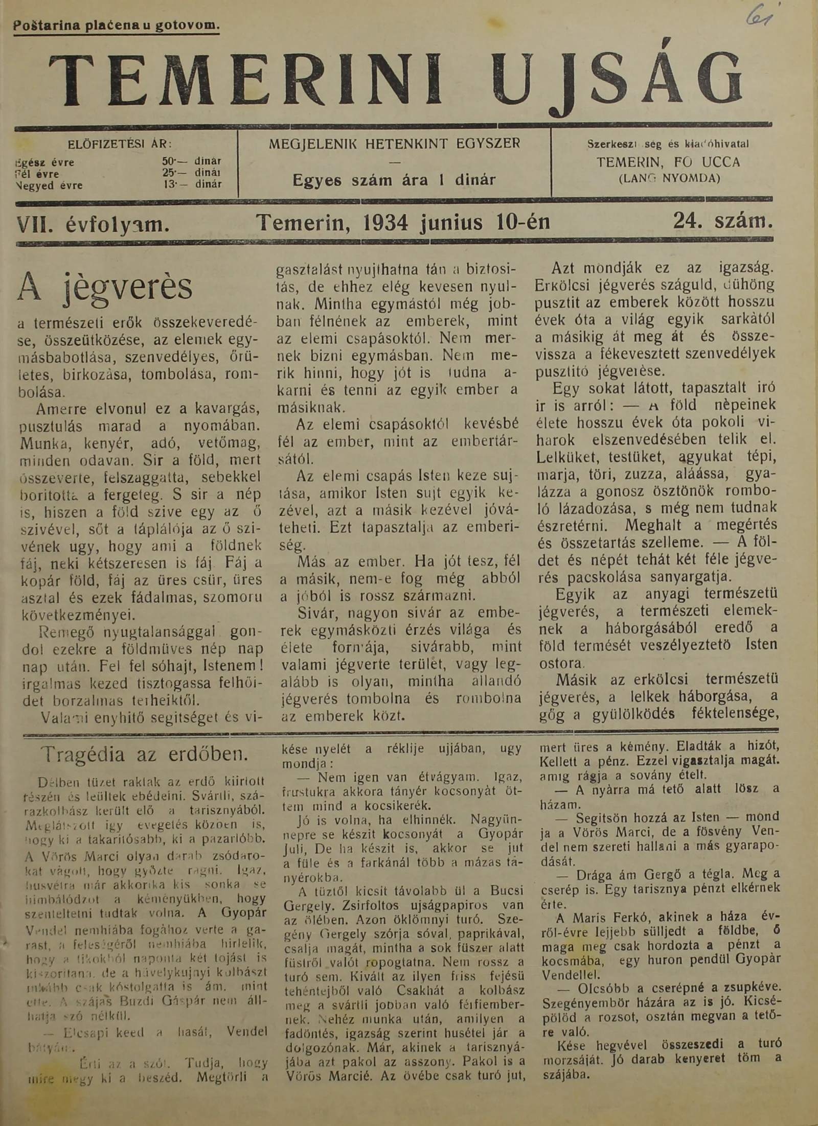 Temerini Újság 1928-1944, 7. évf. 1934. június 10. 24. sz.