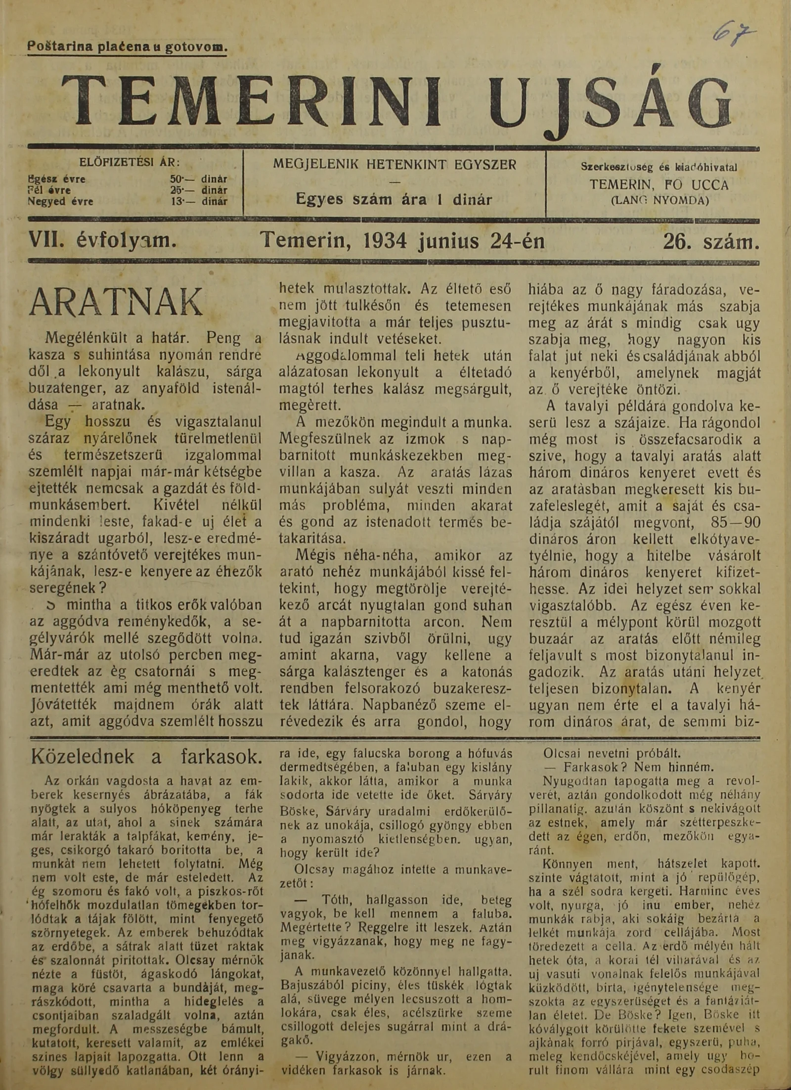 Temerini Újság 1928-1944, 7. évf. 1934. június 24. 26. sz.