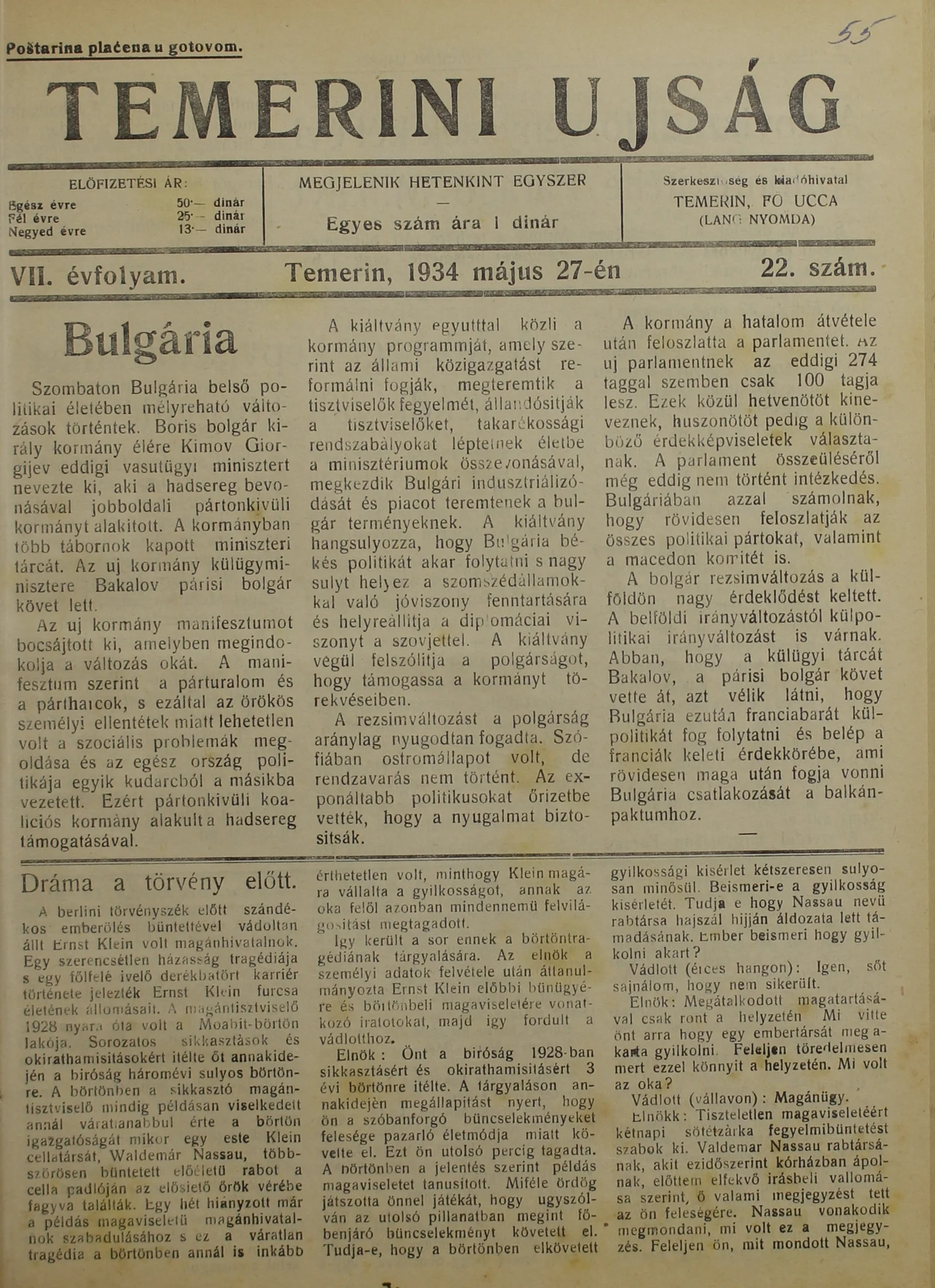 Temerini Újság 1928-1944, 7. évf. 1934. május 27. 22. sz.