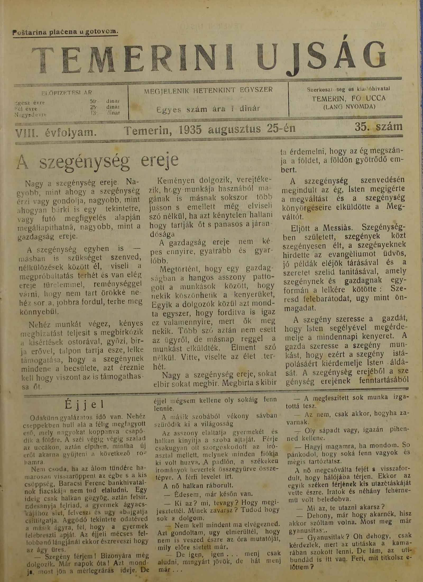 Temerini Újság 1928-1944, 8. évf. 1935. augusztus 25. 35. sz.