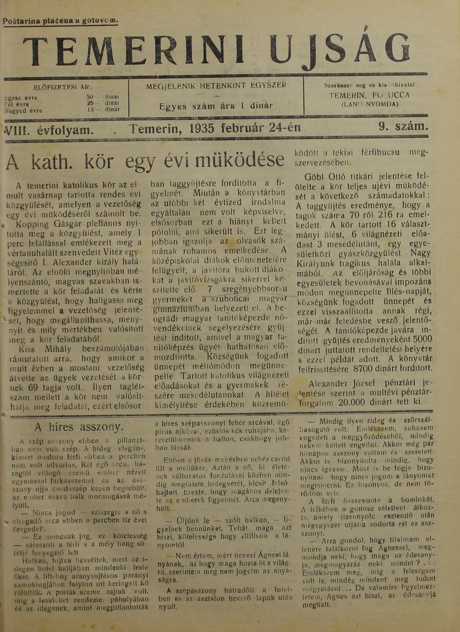 Temerini Újság 1928-1944, 8. évf. 1935. február 24. 9. sz.