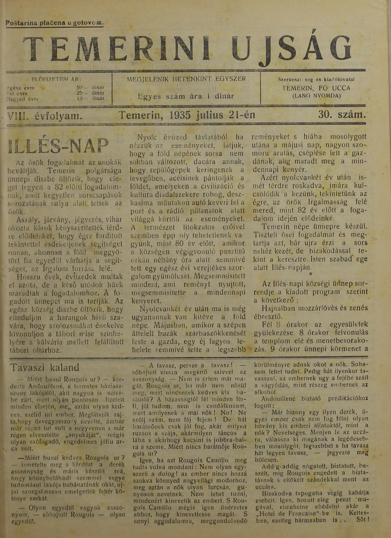 Temerini Újság 1928-1944, 8. évf. 1935. július 21. 30. sz.
