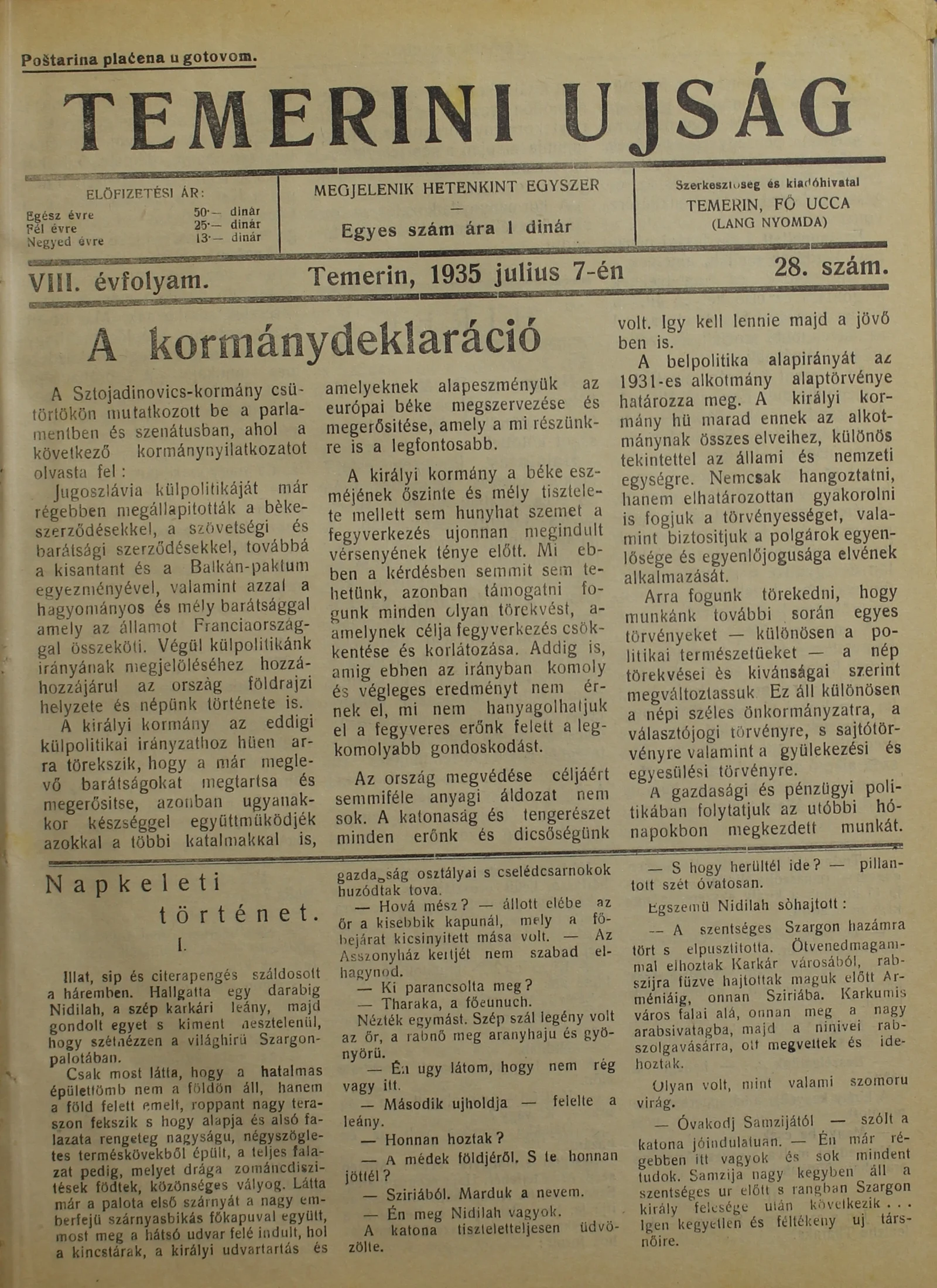 Temerini Újság 1928-1944, 8. évf. 1935. július 7. 28. sz.