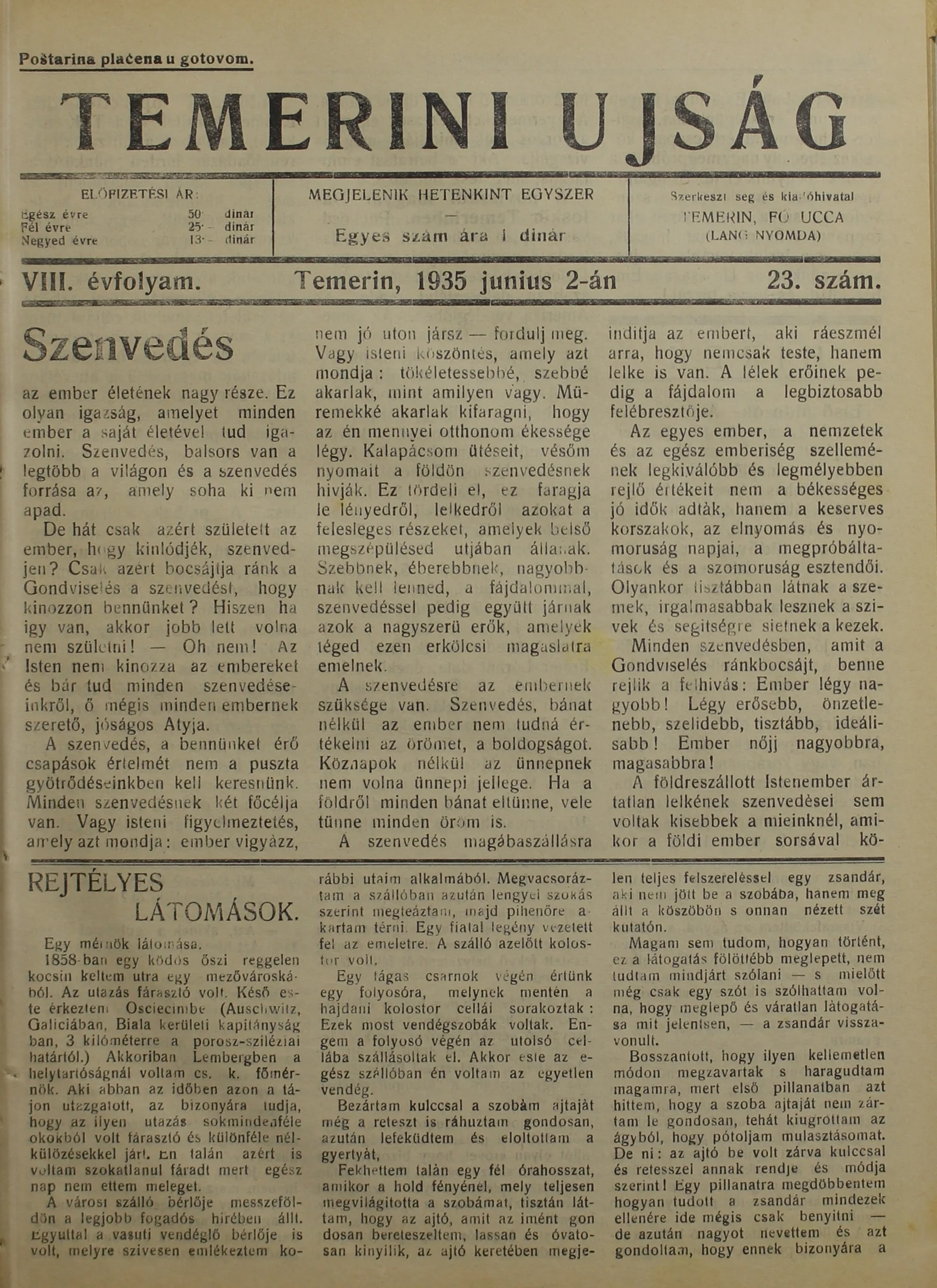Temerini Újság 1928-1944, 8. évf. 1935. június 2. 23. sz.