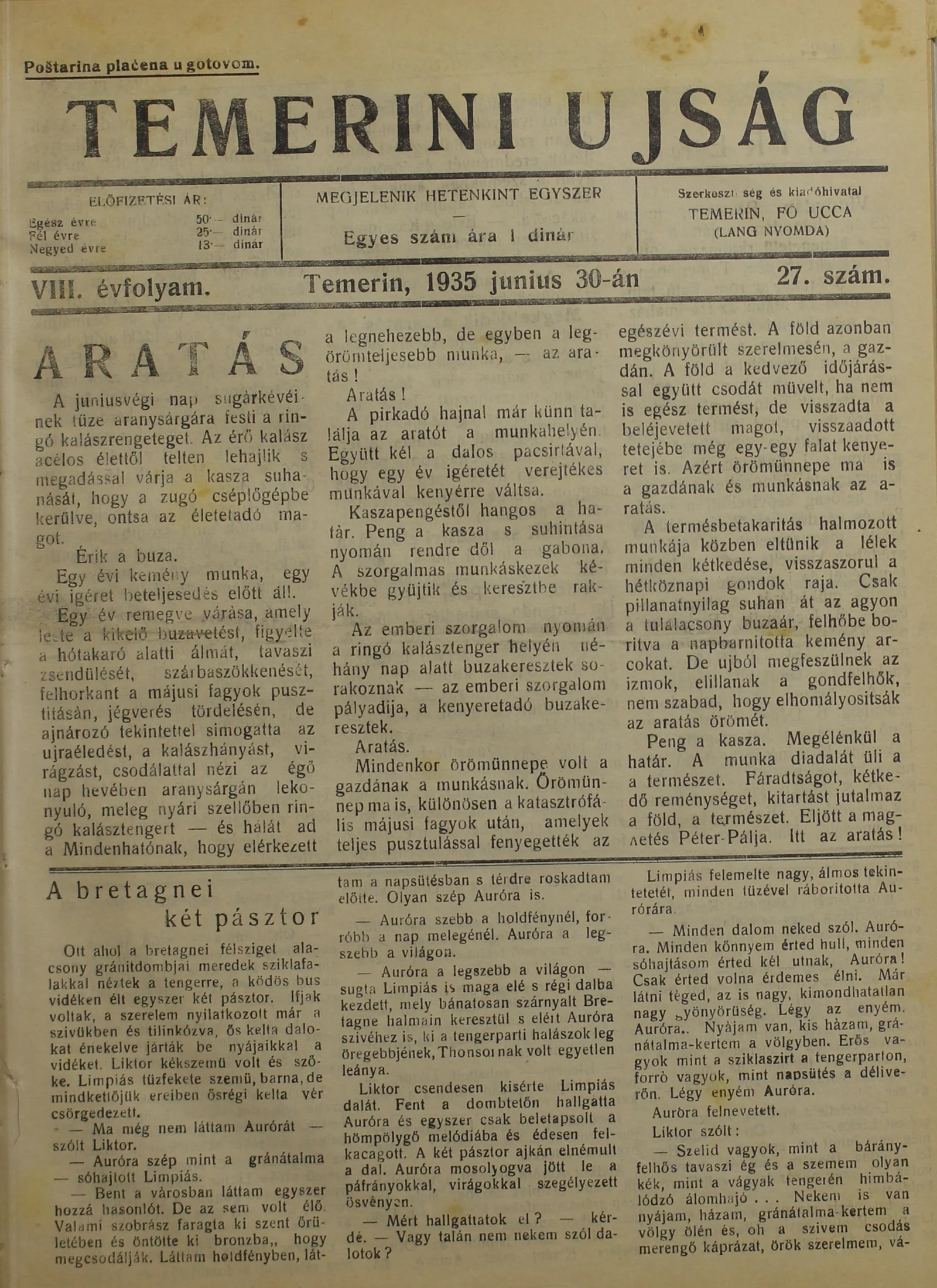 Temerini Újság 1928-1944, 8. évf. 1935. június 30. 27. sz.