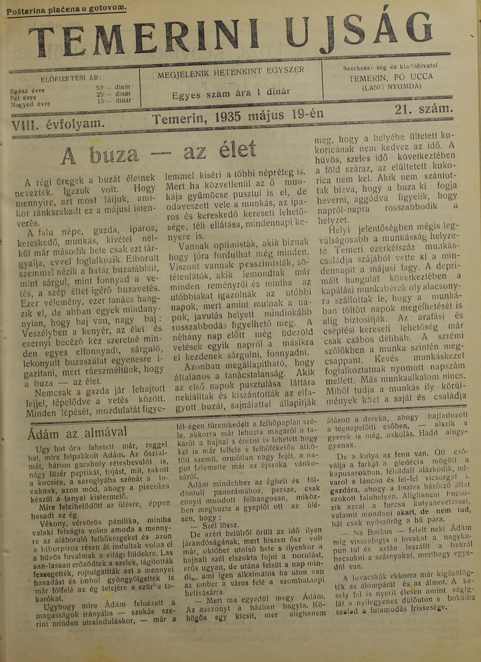 Temerini Újság 1928-1944, 8. évf. 1935. május 19. 21. sz.