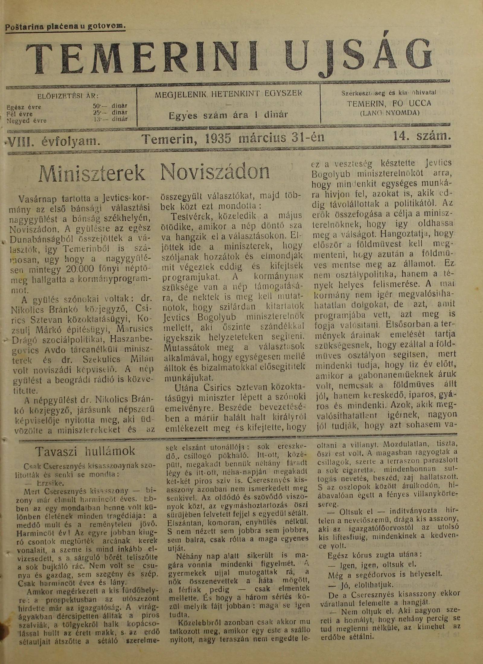Temerini Újság 1928-1944, 8. évf. 1935. március 31. 14. sz.