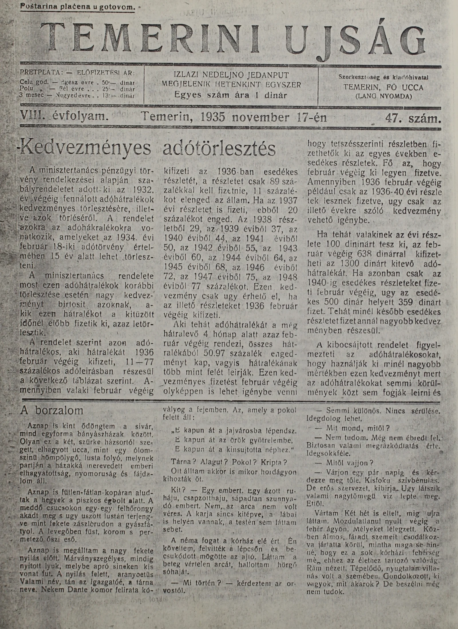 Temerini Újság 1928-1944, 8. évf. 1935. november 17. 47. sz.