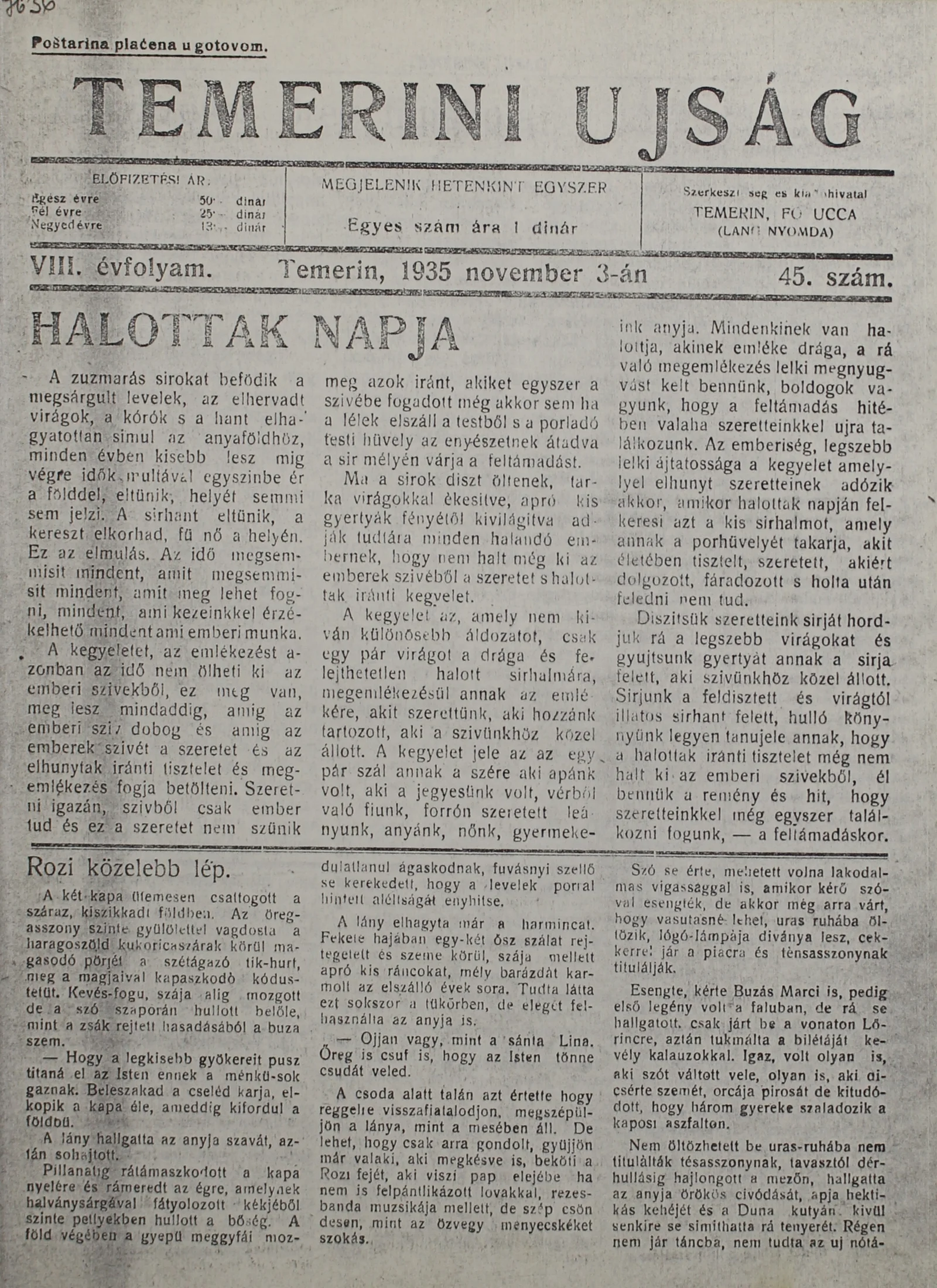 Temerini Újság 1928-1944, 8. évf. 1935. november 3. 45. sz.