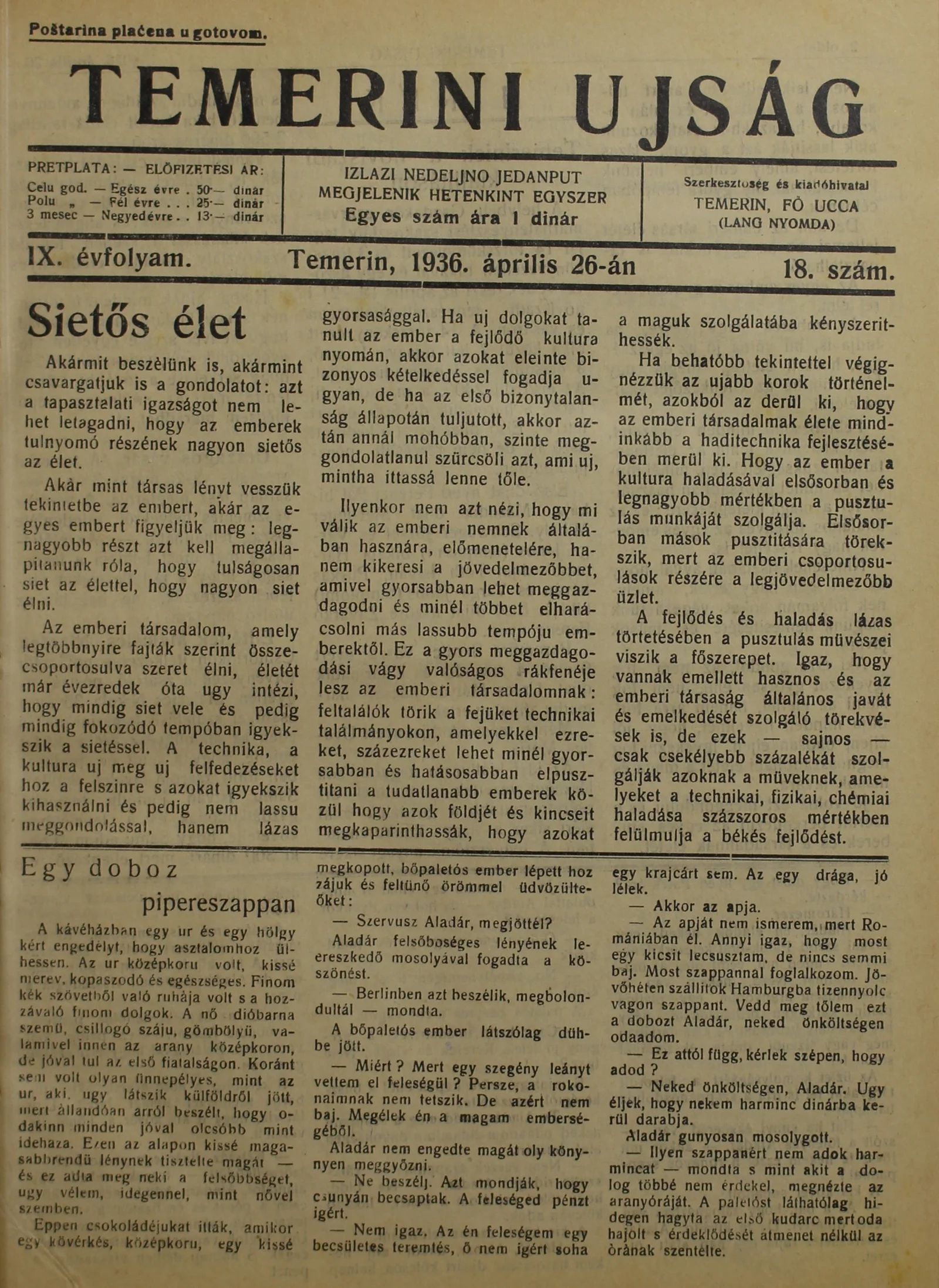 Temerini Újság 1928-1944, 9. évf. 1936. április 26. 18. sz.