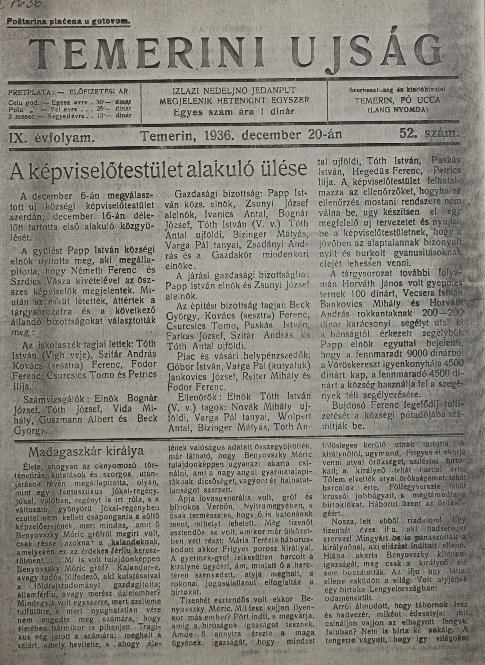 Temerini Újság 1928-1944, 9. évf. 1936. december 20. 52. sz.