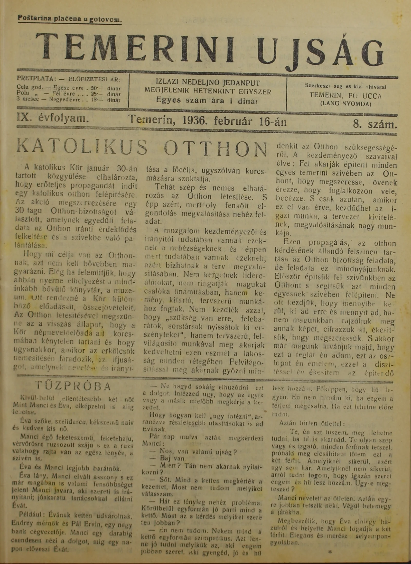 Temerini Újság 1928-1944, 9. évf. 1936. február 16. 8. sz.