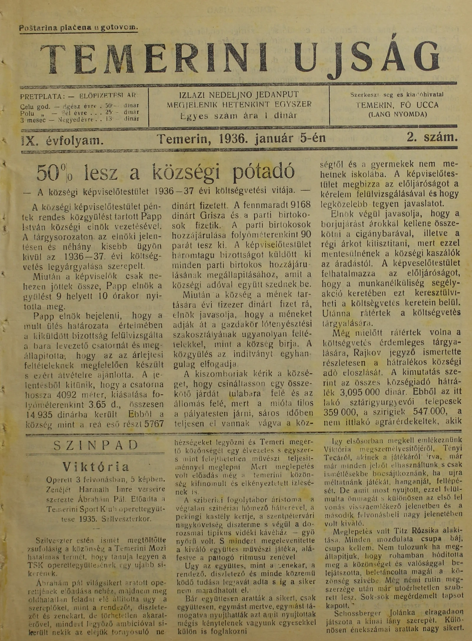 Temerini Újság 1928-1944, 9. évf. 1936. január 5. 2. sz.