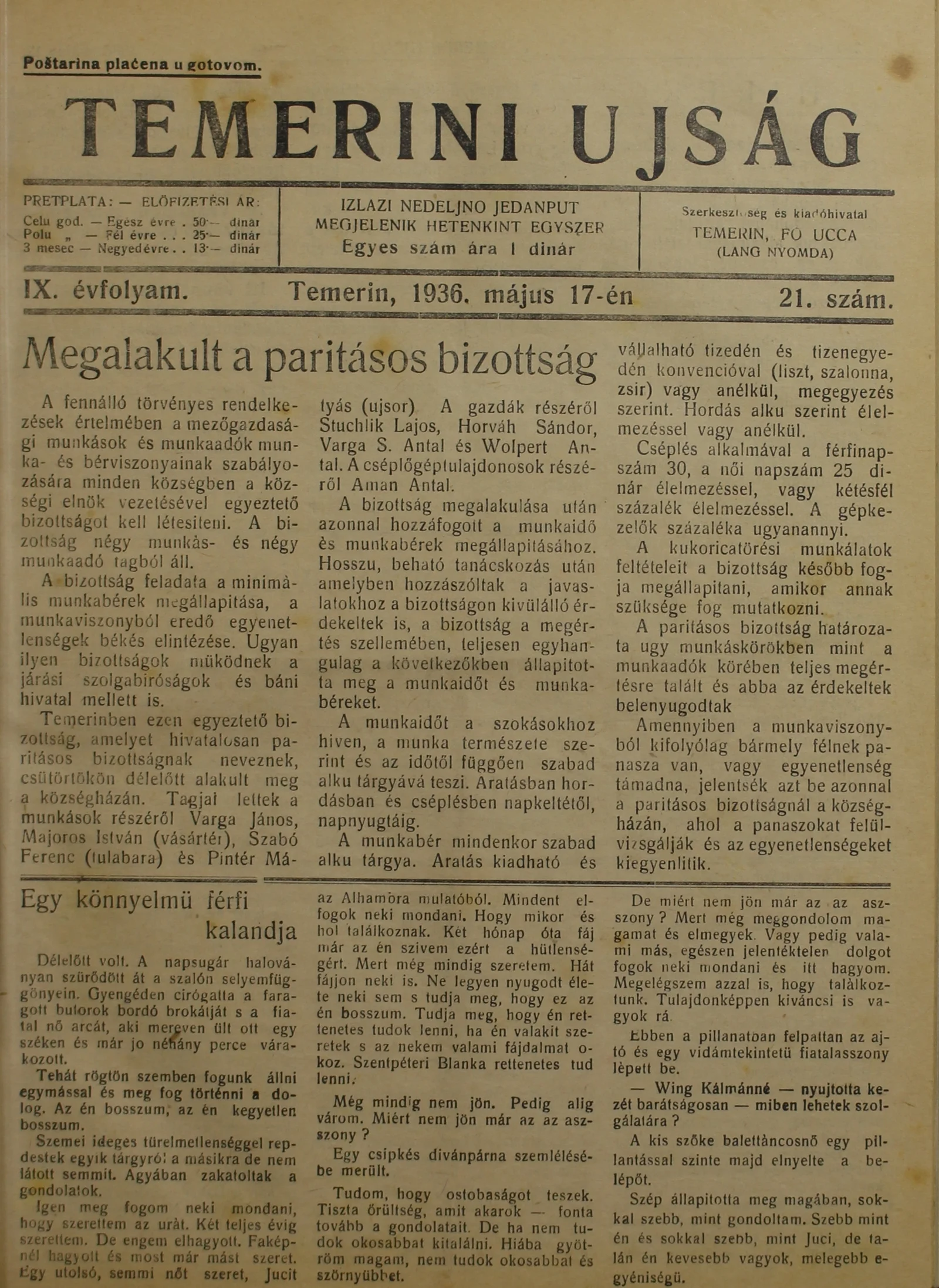 Temerini Újság 1928-1944, 9. évf. 1936. május 17. 21. sz.