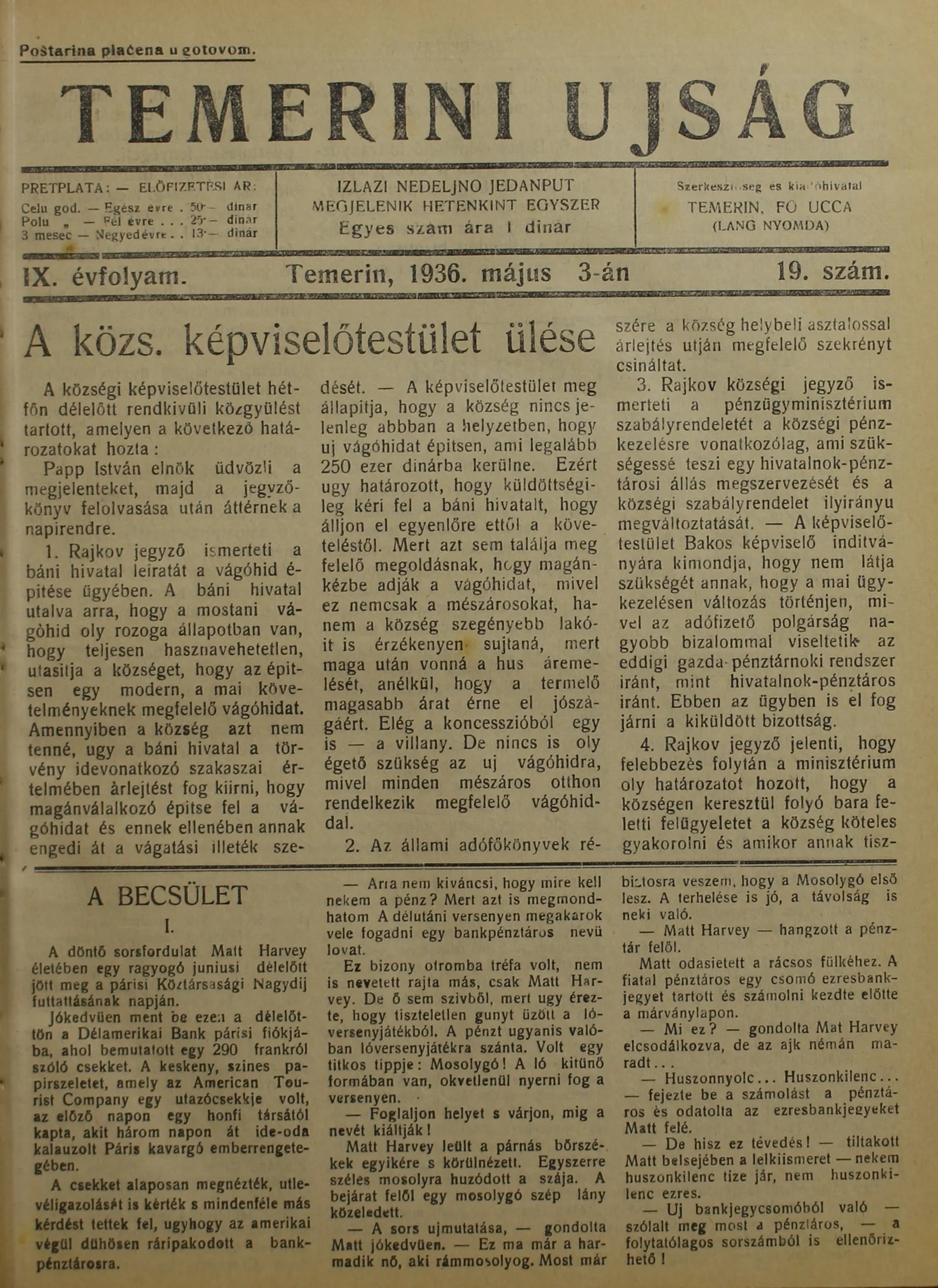 Temerini Újság 1928-1944, 9. évf. 1936. május 3. 19. sz.